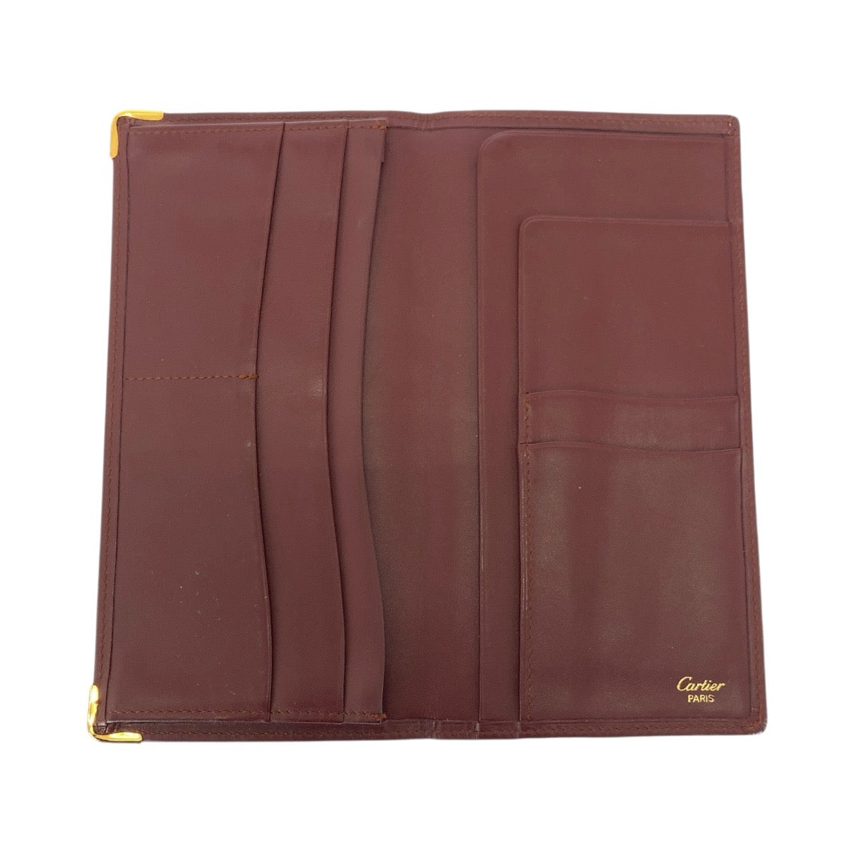 21326 CARTIER カルティエ ヴィンテージ マストライン ワインレッド ゴールド金具 レザー 長財布 ロングウォレット レディース AB