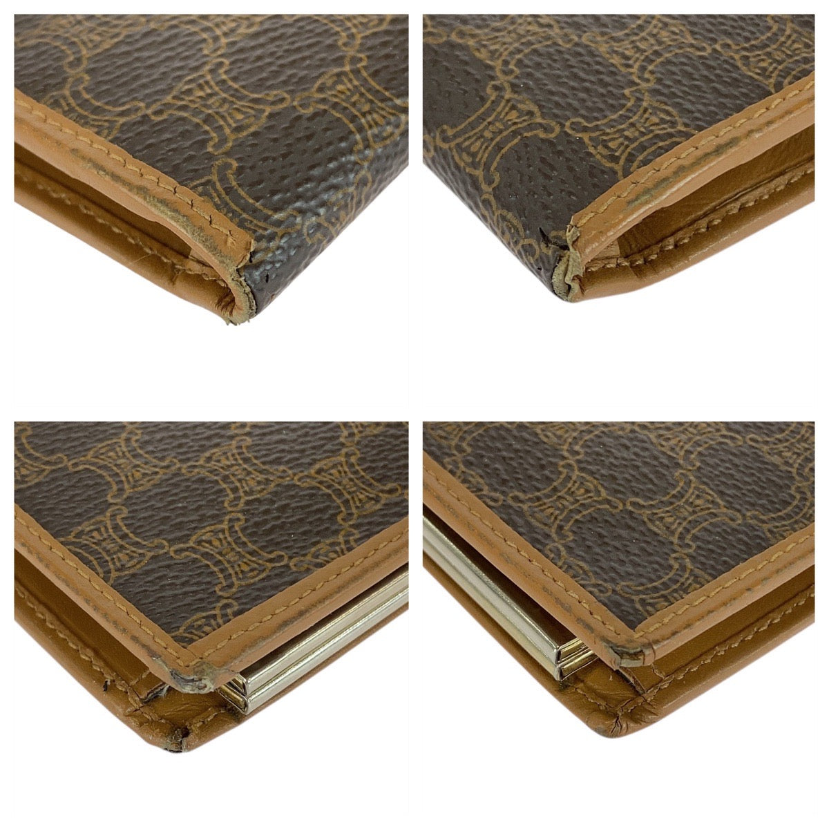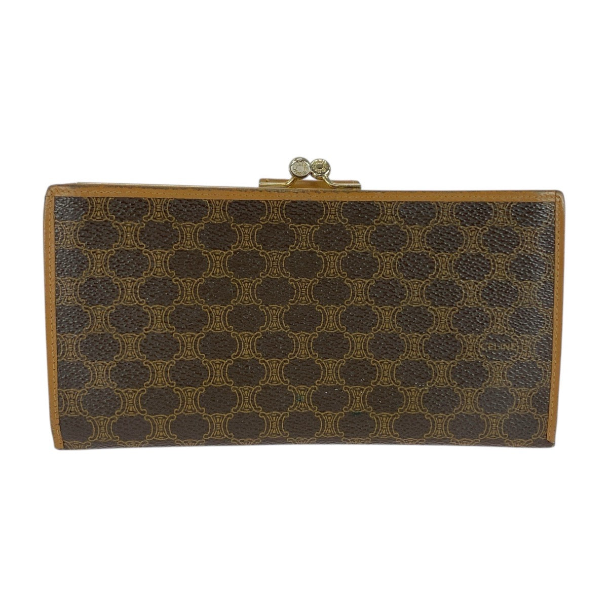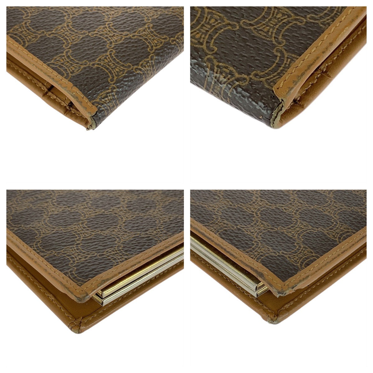 21335 CELINE セリーヌ ヴィンテージ マカダム トリオンフ ブラウン ゴールド金具 PVC / レザー 長財布 ロングウォレット レディース AB