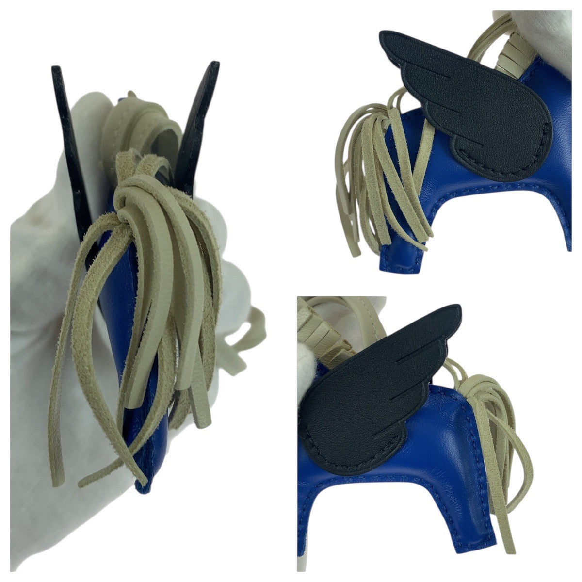 21382 HERMES エルメス ロデオ ペガサスPM ブルー ブラック ホワイト アニョーミロ / スイフト キーホルダー バッグチャーム U刻印 レディース A80
