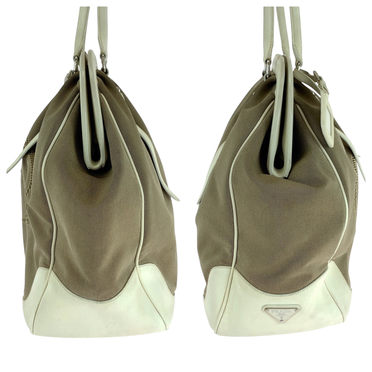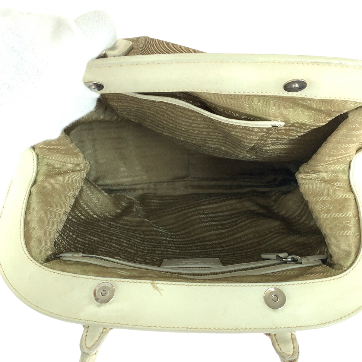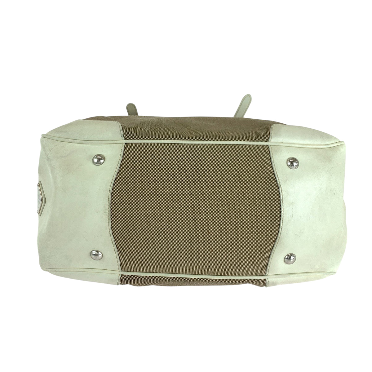 21388 PRADA プラダ ロゴジャガード ブラウン ホワイト ゴールド金具 キャンバス ハンドバッグ トートバッグ ショルダーバッグ レディース ABP40