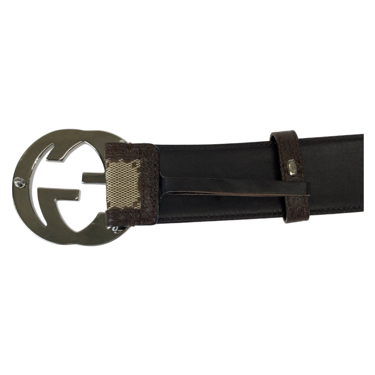 21475 GUCCI グッチ インターロッキング 75cm 30インチ 男女兼用 ブラウン 茶 シルバー金具 GGキャンバス / レザー 114876 ベルト GGバックル メンズ AB33