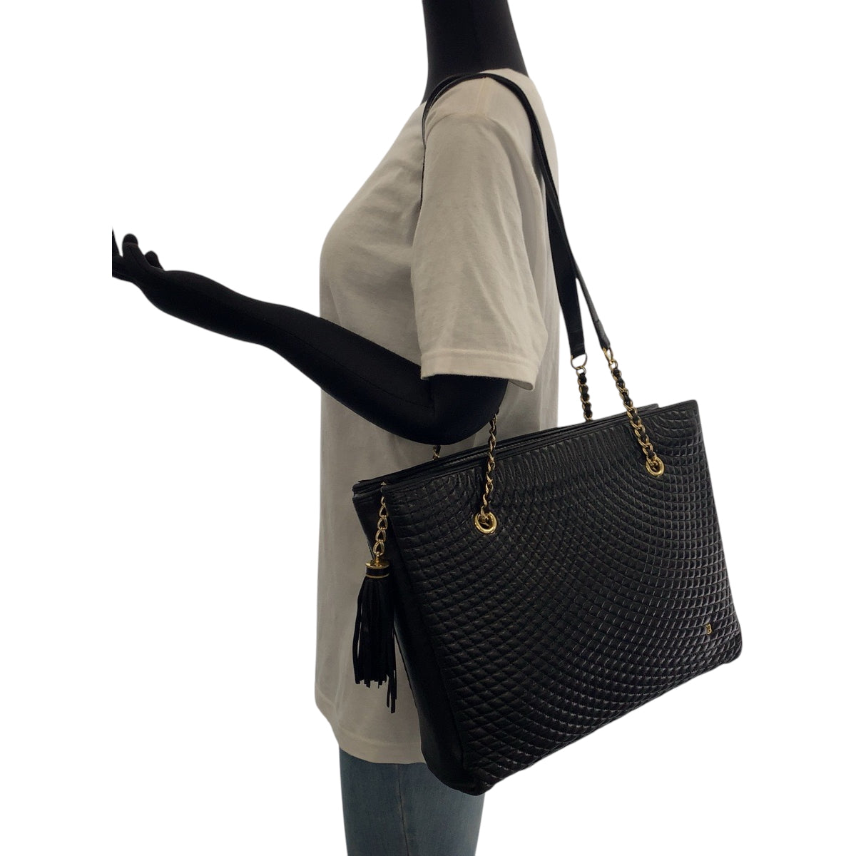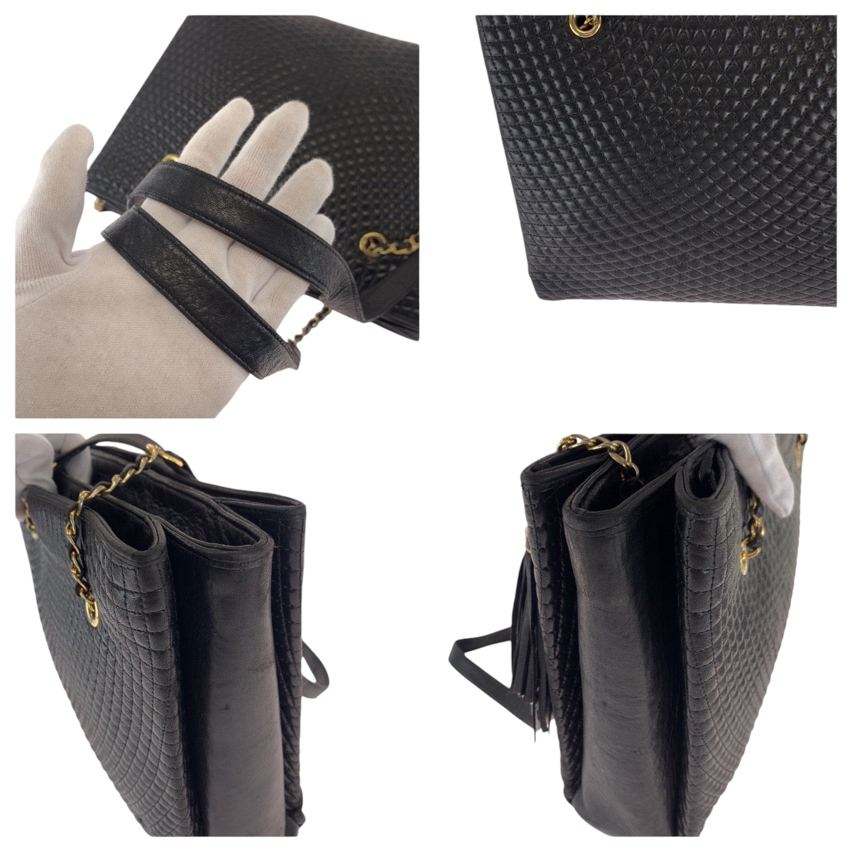 21506 BALLY バリー ヴィンテージ キルティング フリンジ ブラック 黒 ゴールド金具 レザー チェーントートバッグ ショルダーバッグ レディース AB