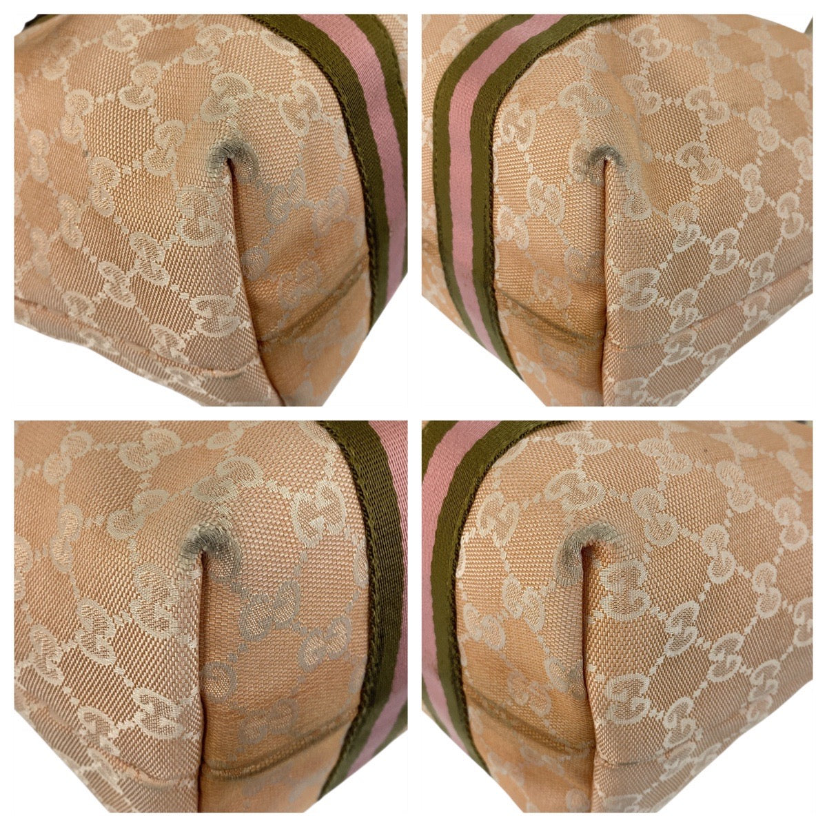 21508 GUCCI グッチ シェリーライン ピンク アイボリー ゴールド金具 GGキャンバス / レザー 137396 トートバッグ ショルダーバッグ レディース AB28