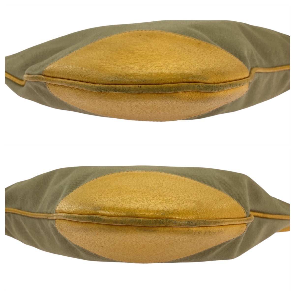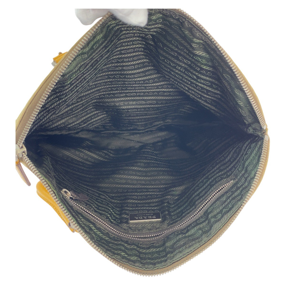 21526 PRADA プラダ 三角ロゴプレート ベージュ イエロー シルバー金具 キャンバス / レザー トートバッグ ハンドバッグ ショルダーバッグ レディース ABP25