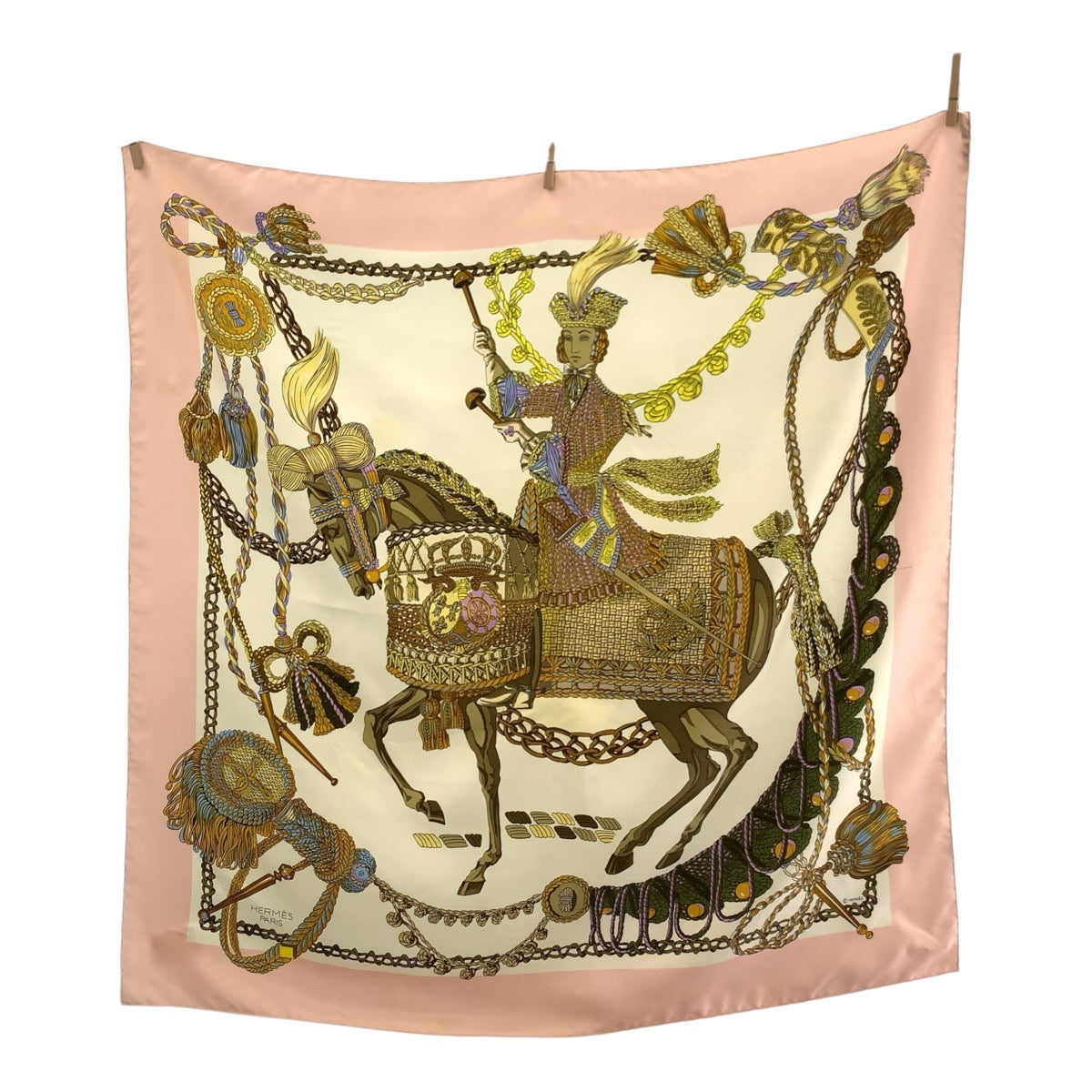 21538 HERMES エルメス ティンパニ奏者 カレ90 ピンク マルチカラー シルク スカーフ 大判スカーフ レディース AB19