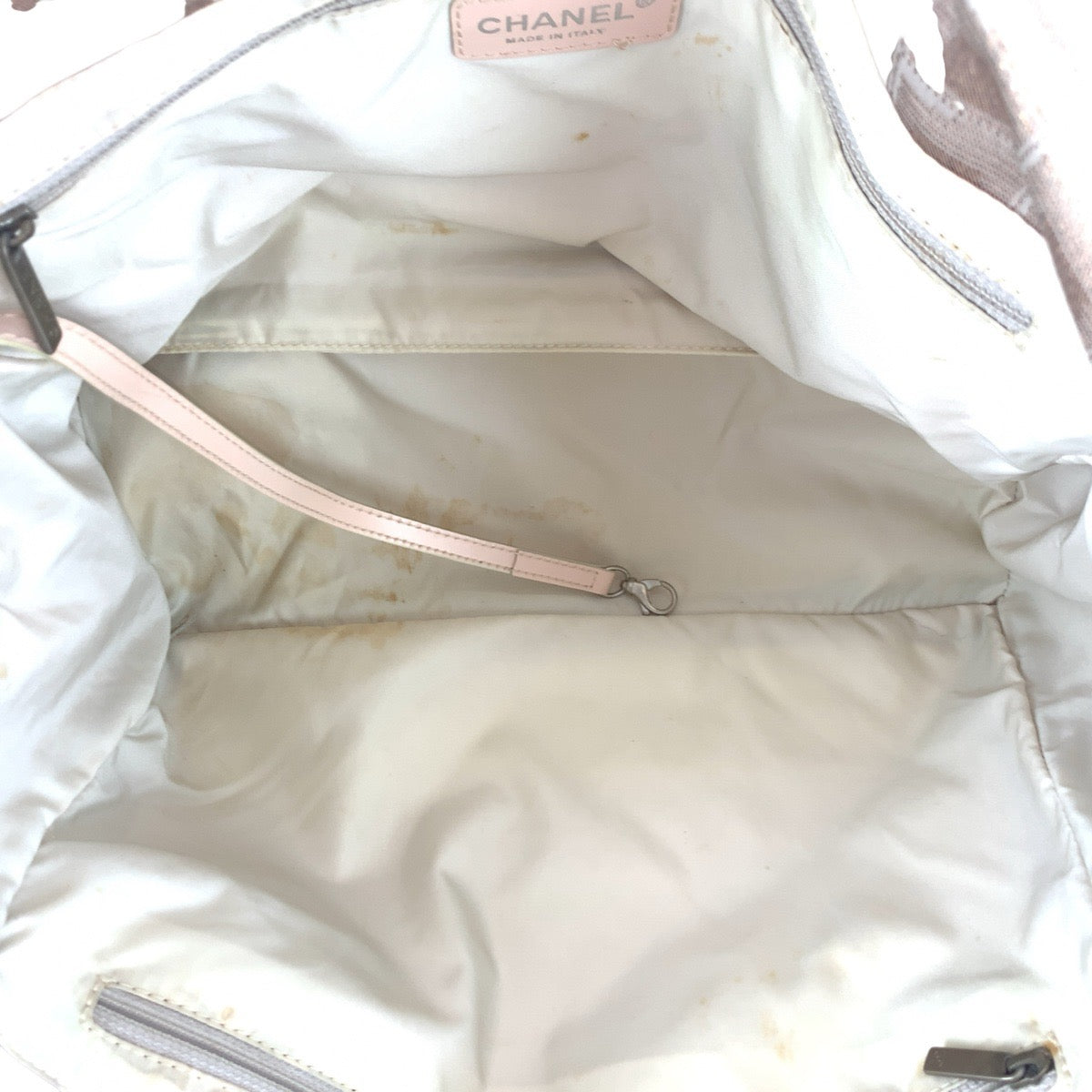 21587 CHANEL シャネル ヴィンテージ ニュートラベルライン トートMM ココマーク サーモンピンク シルバー金具 ナイロン / レザー トートバッグ ハンドバッグ レディース AB25