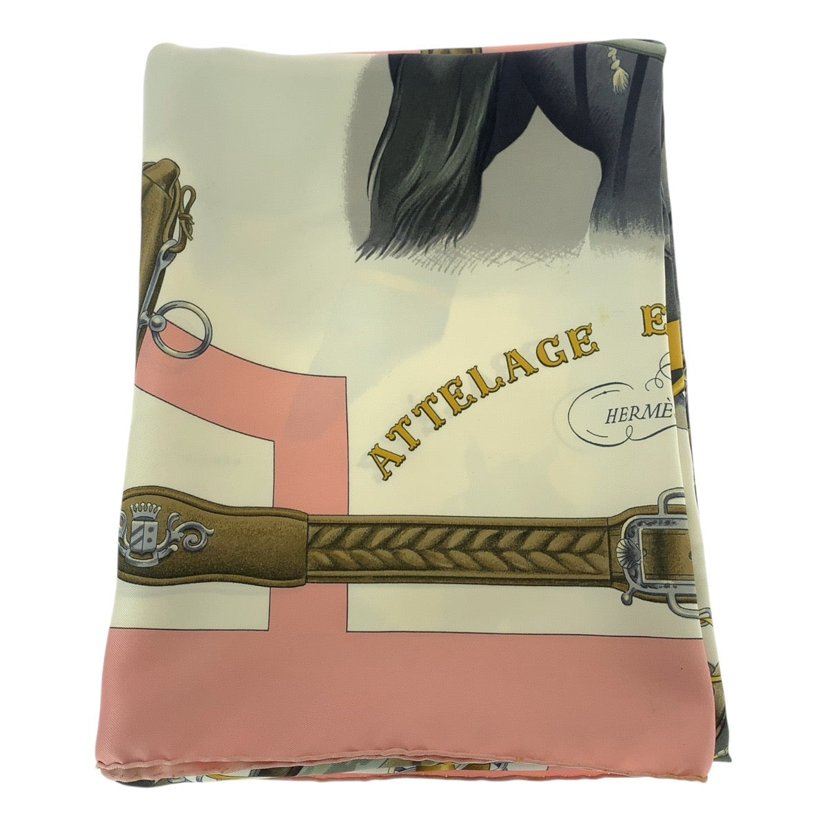 21606 HERMES エルメス カレ90 ATTELAGE EN ARBALETE ピンク マルチカラー シルク スカーフ レディース AB14