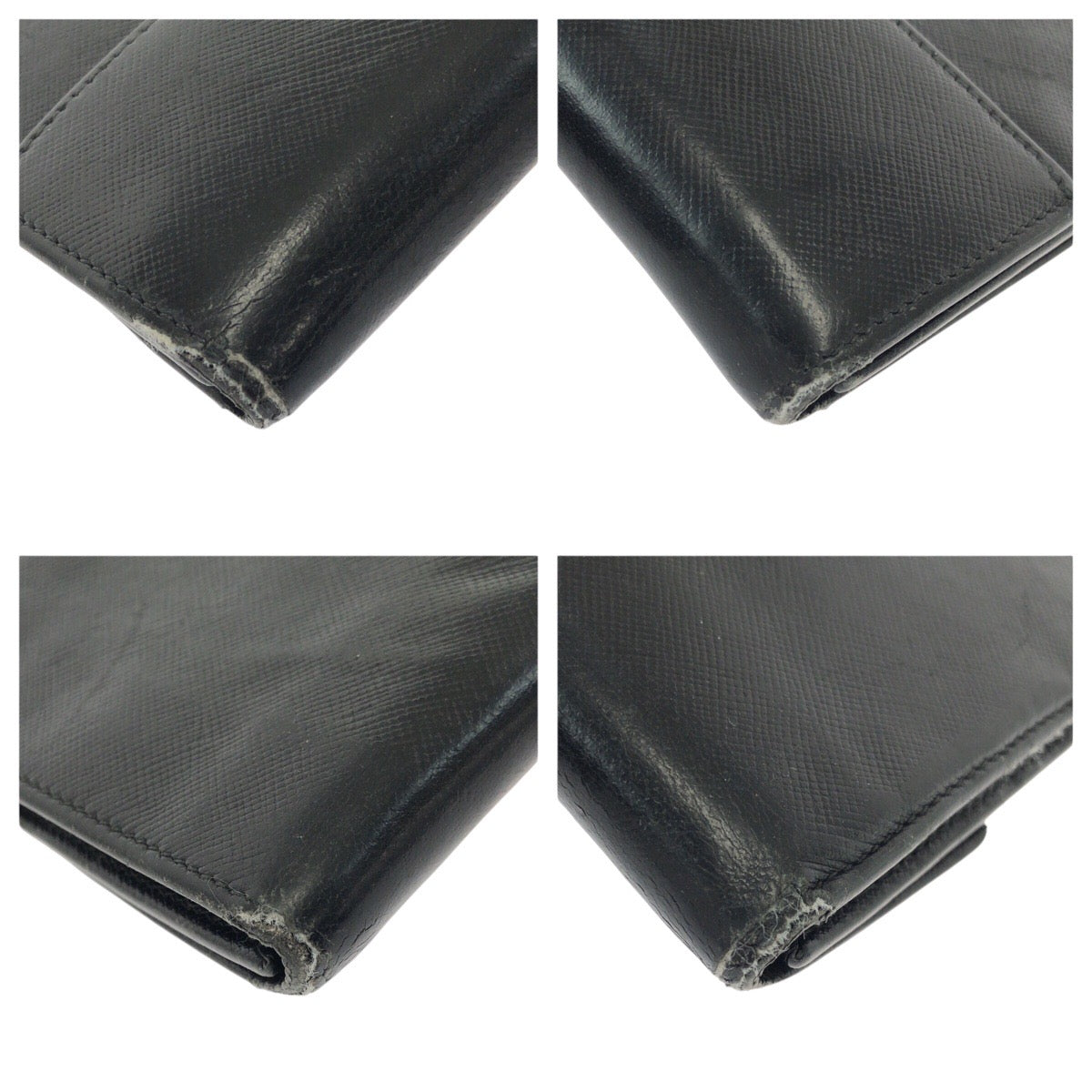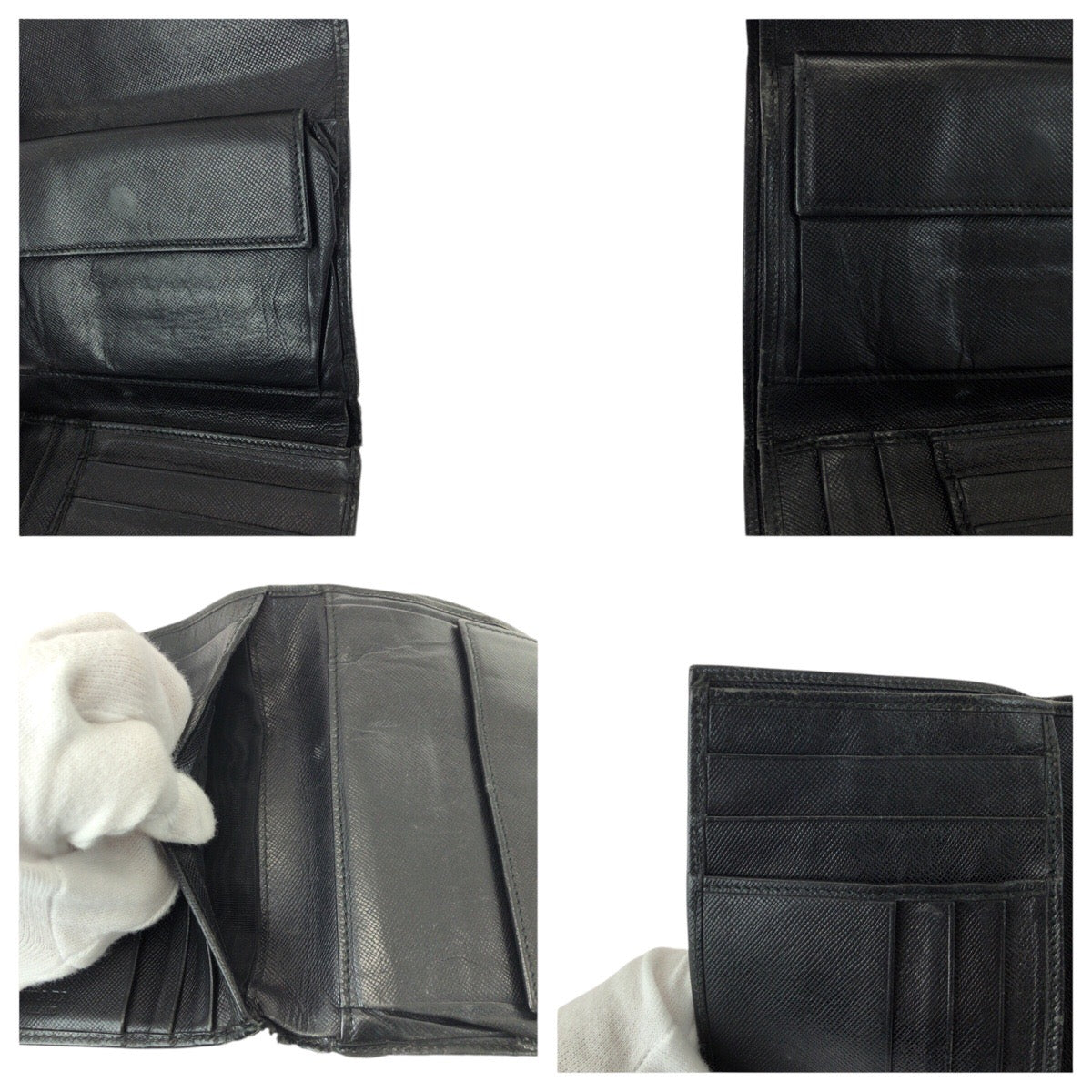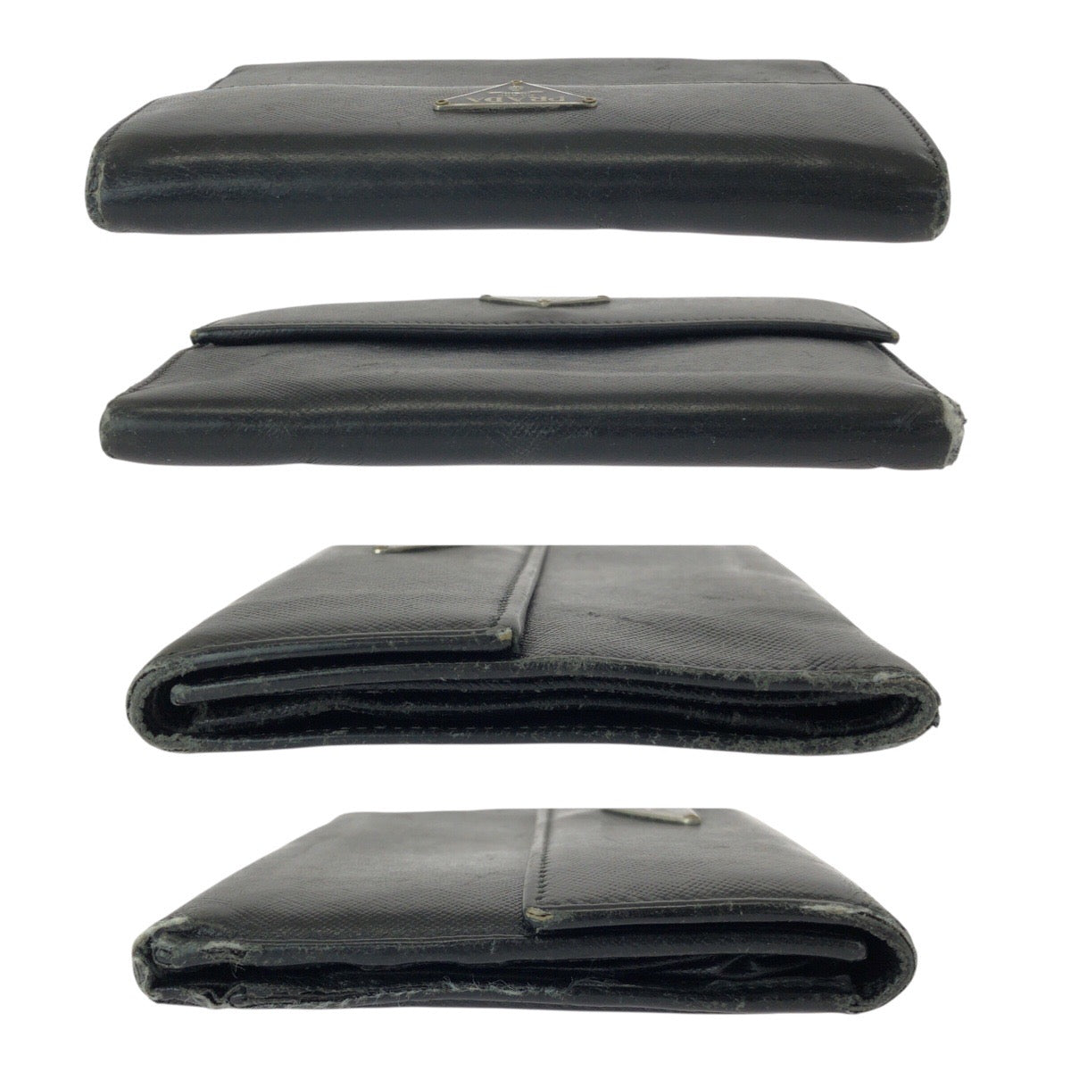 21638 PRADA プラダ サフィアーノ 三角ロゴプレート ブラック 黒 シルバー金具 レザー 折財布 コンパクトウォレット レディース B8