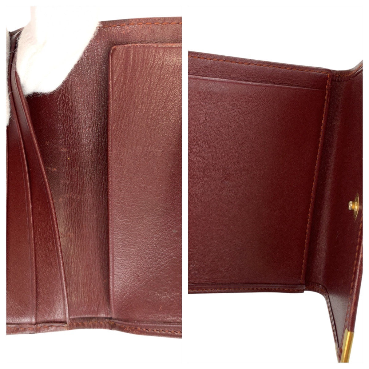 21643 CARTIER カルティエ マストライン ワインレッド ゴールド金具 レザー 折財布 コンパクトウォレット レディース AB8