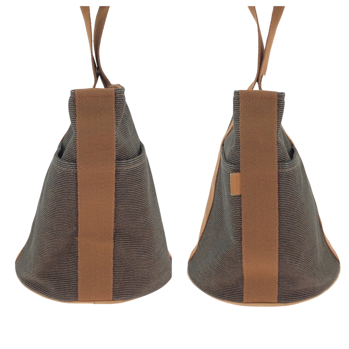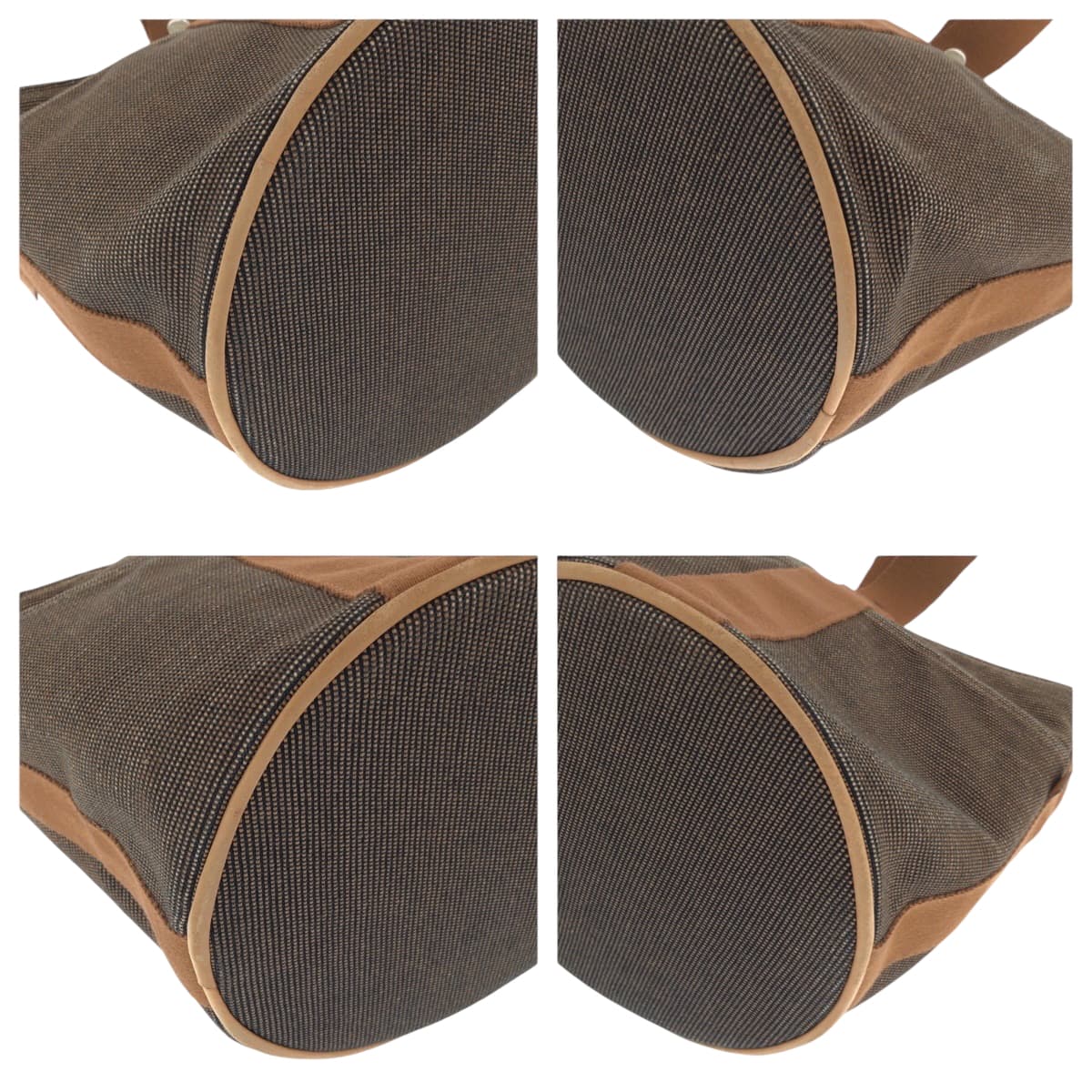 21757 HERMES エルメス サクソーMM ブラウン シルバー金具 キャンバス ハンドバッグ レディース ABP46