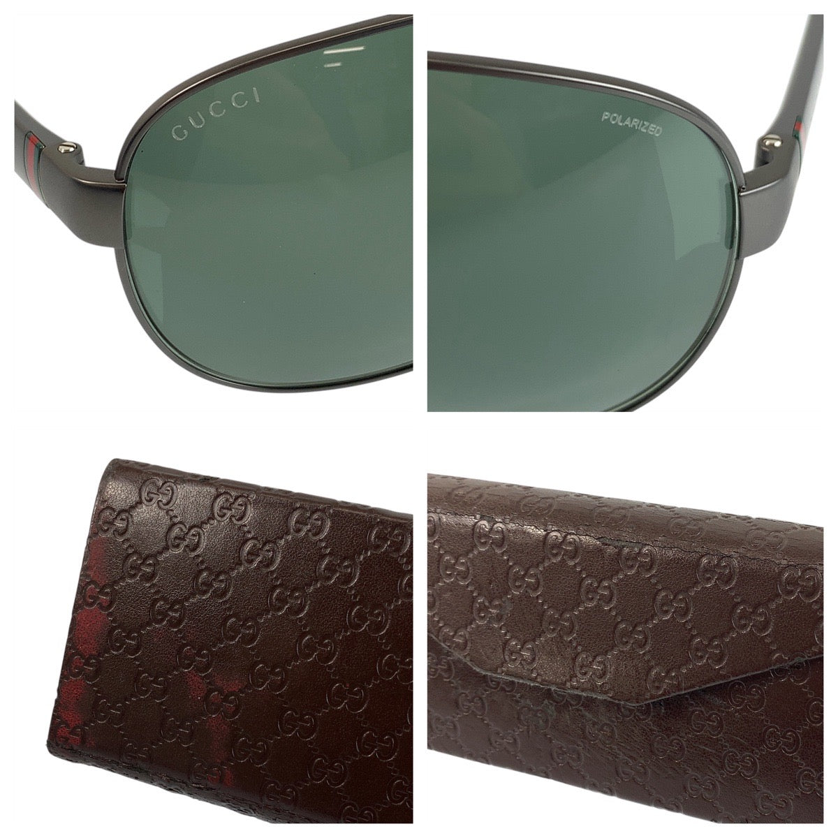 21857 GUCCI グッチ シェリーライン グレー グリーン プラスチック / メタル GG 2229 F/S 8EBUC 64▫︎14 135 サングラス 偏光レンズ ティアドロップ メンズ AB18