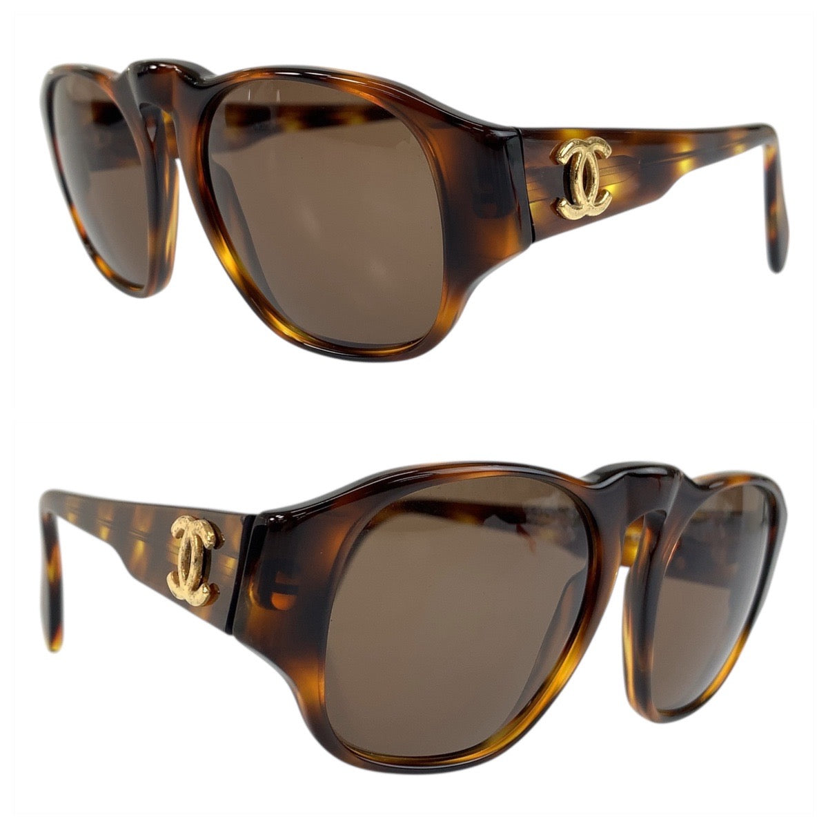21866 CHANEL シャネル ココマーク マーブル ブラウン ゴールド金具 プラスチック 01452 91235 サングラス ウェリントン レディース A30