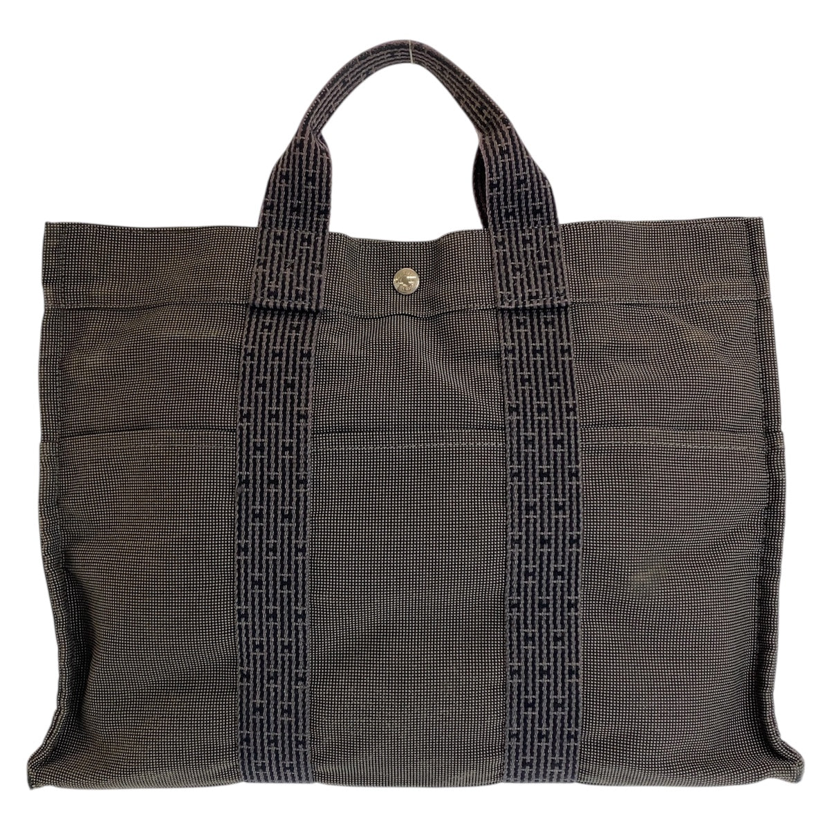 21890 HERMES エルメス エールラインMM グレー シルバー金具 キャンバス トートバッグ ハンドバッグ レディース AB21