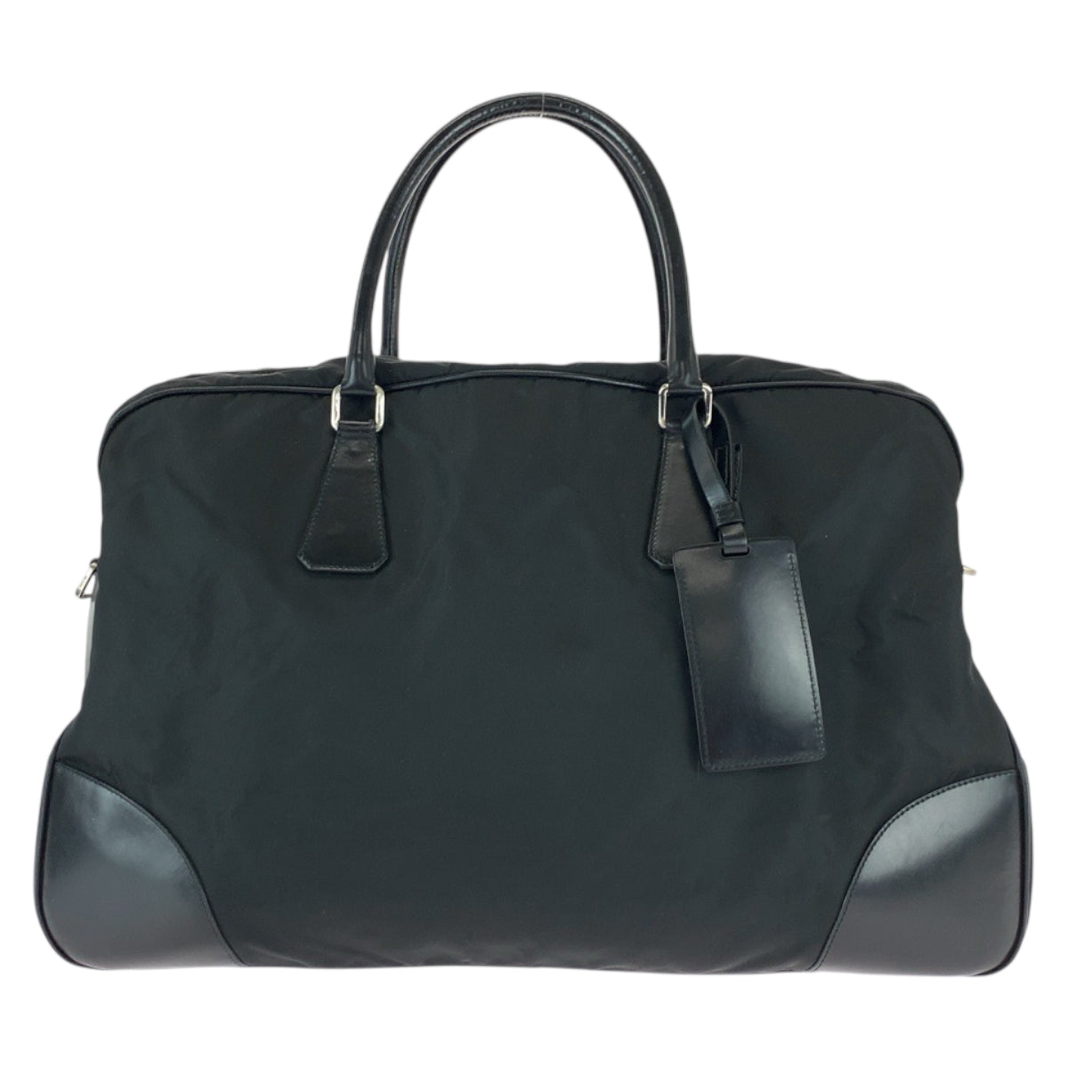 21988 PRADA プラダ テスート 三角ロゴプレート ブラック 黒 シルバー金具 ナイロン / レザー ボストンバッグ 旅行バッグ トートバッグ メンズ ABP44
