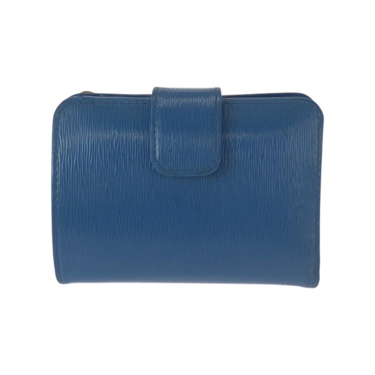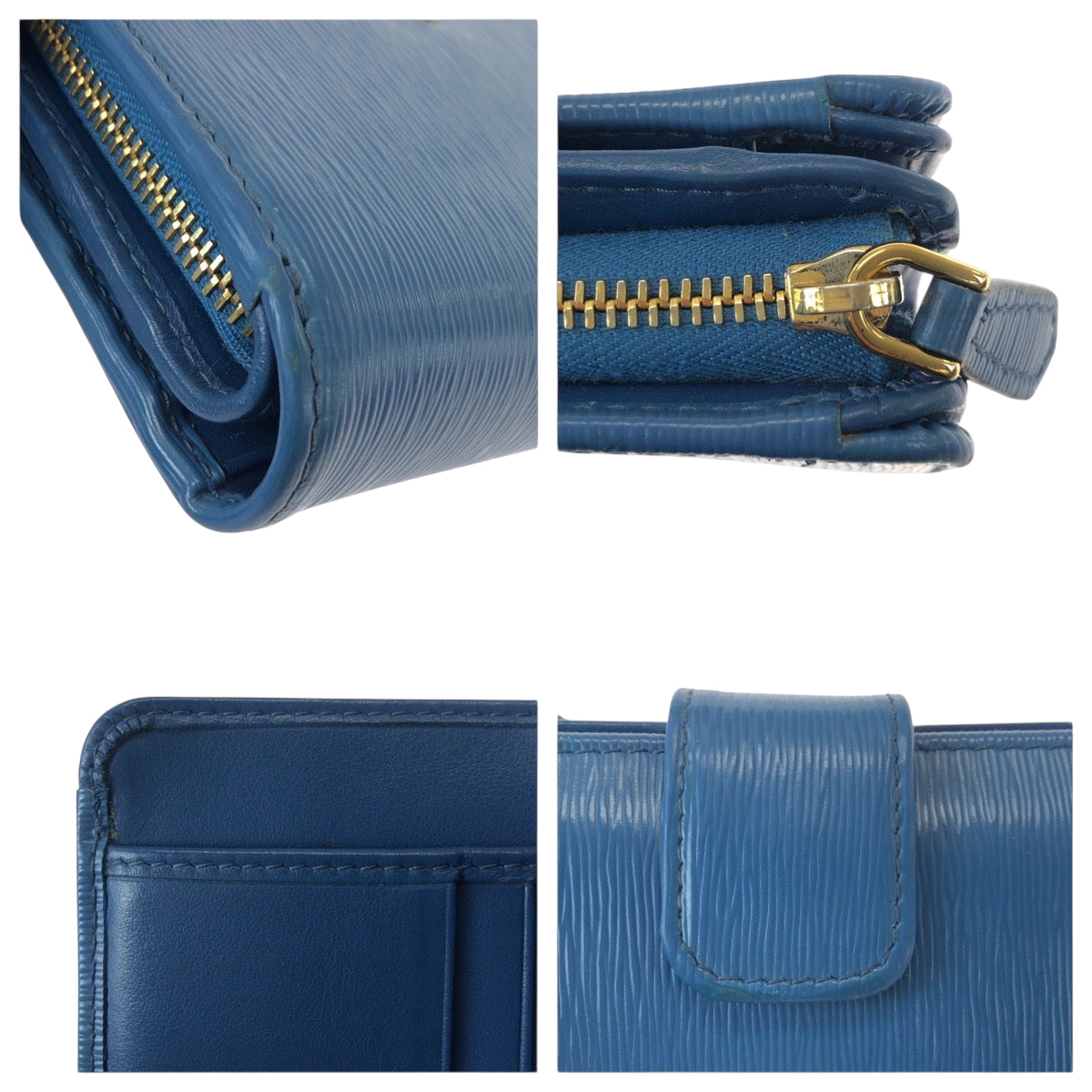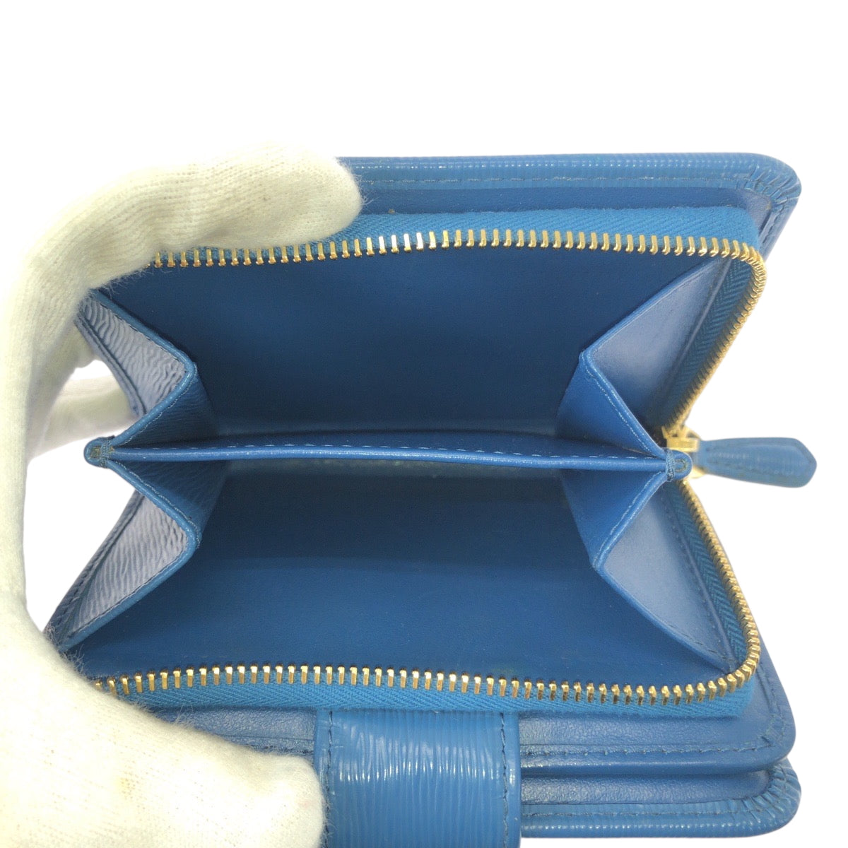 21998 PRADA プラダ ブルー ゴールド金具 レザー 折財布 コンパクトウォレット 男女兼用 レディース ABP21