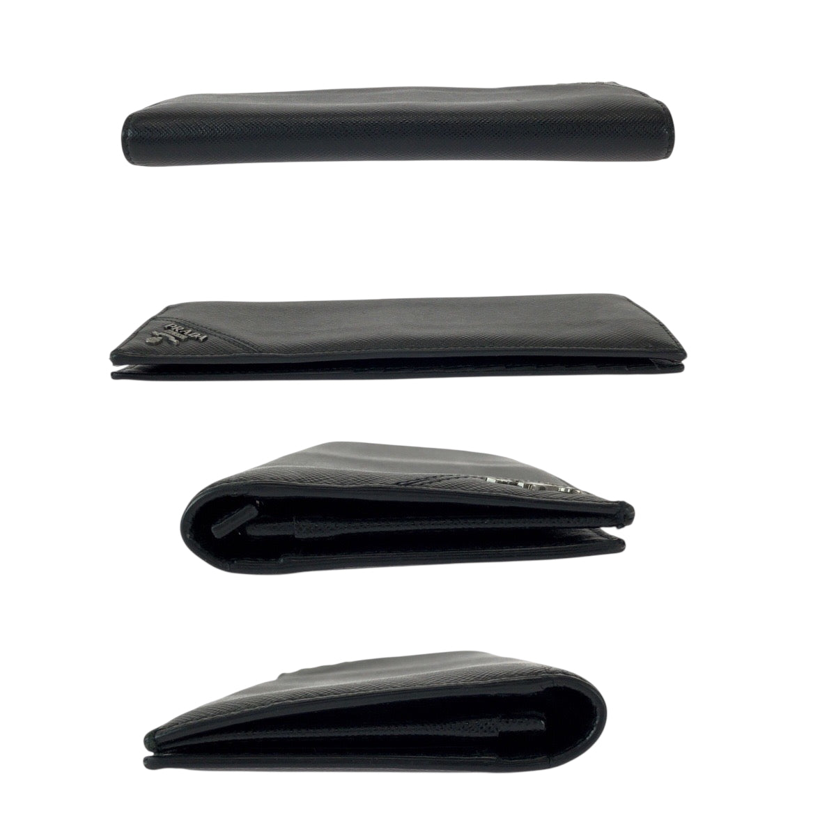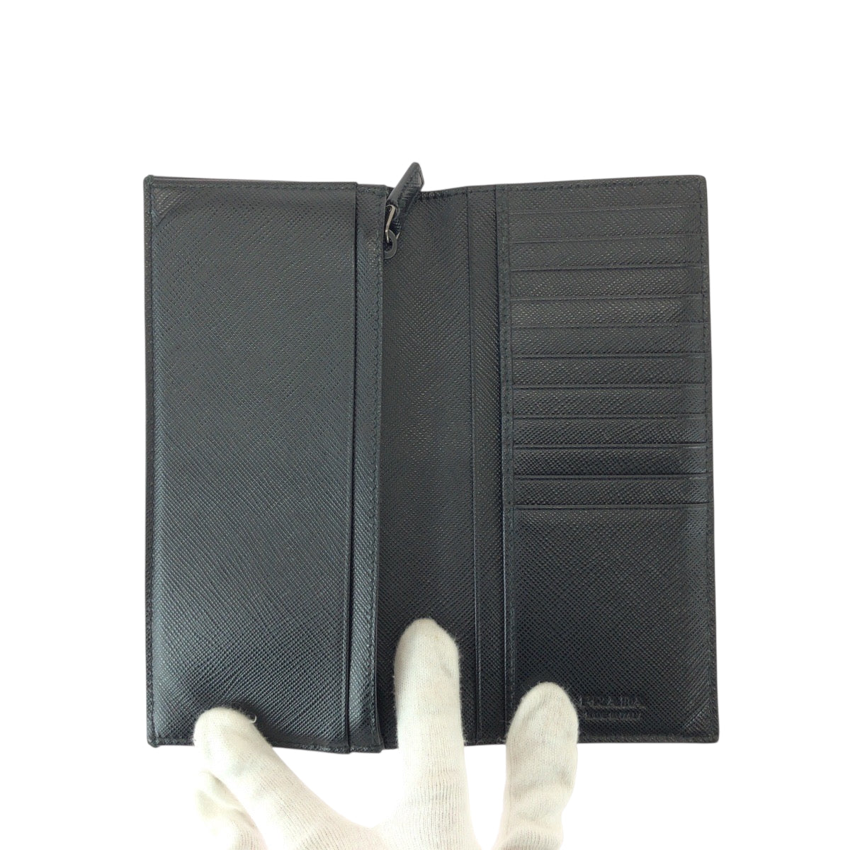 22022 PRADA プラダ サフィアーノ ブラック 黒 ガンメタ金具 レザー 長財布 折財布 ロングウォレット メンズ A25