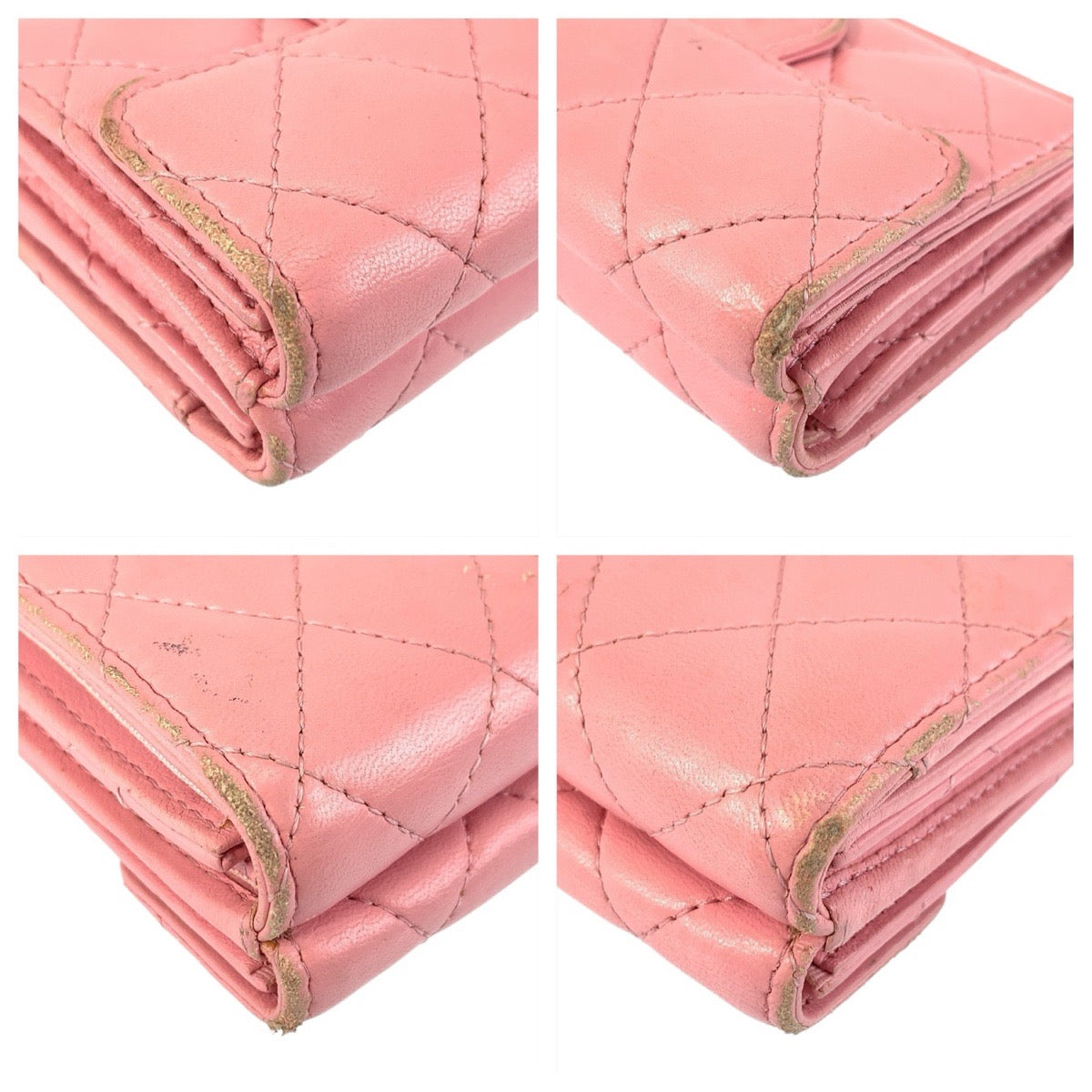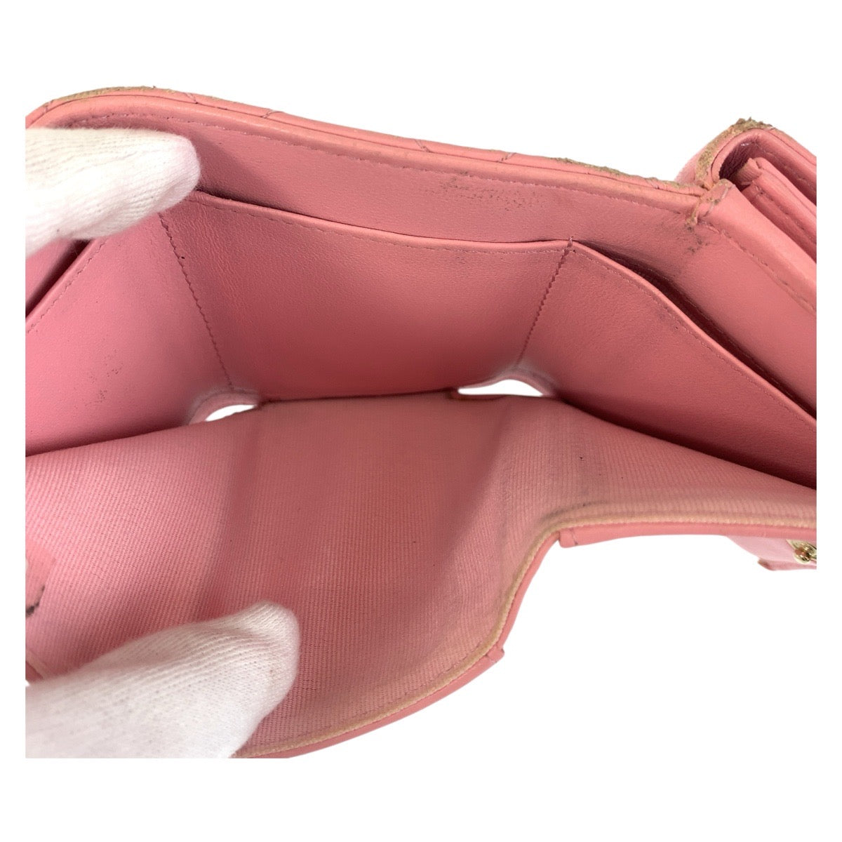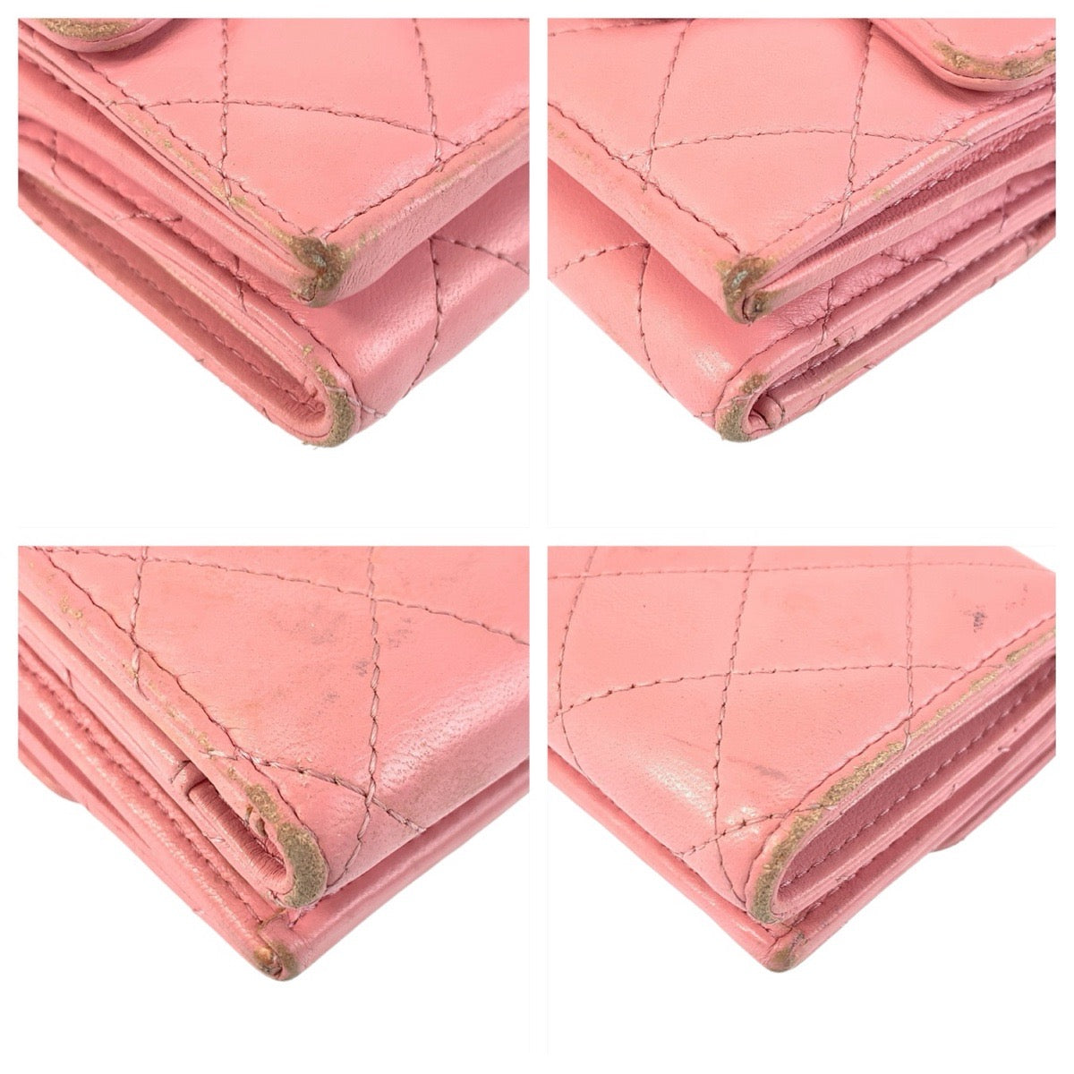 22027 CHANEL シャネル マトラッセ ココマーク ピンク ゴールド金具 レザー 折財布 コンパクトウォレット レディース AB30