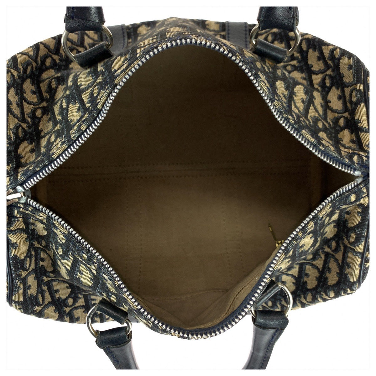22039 Christian Dior クリスチャンディオール トロッター ベージュ ネイビー シルバー金具 キャンバス / レザー ハンドバッグ ミニボストンバッグ レディース ABP49