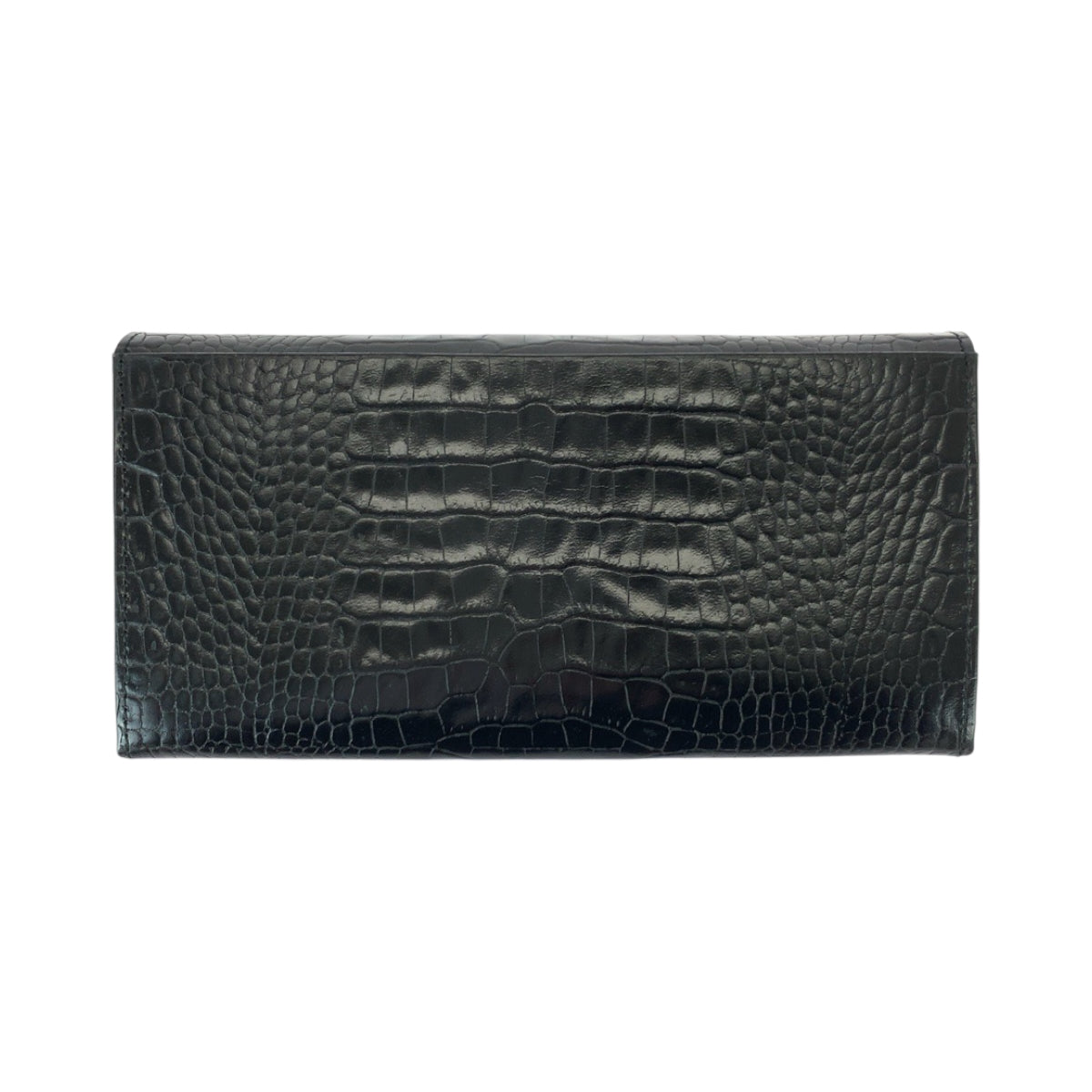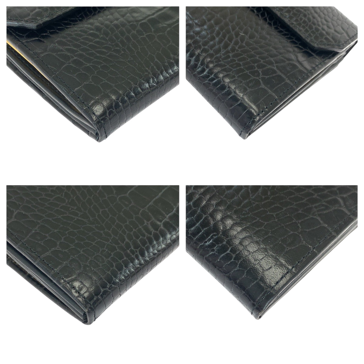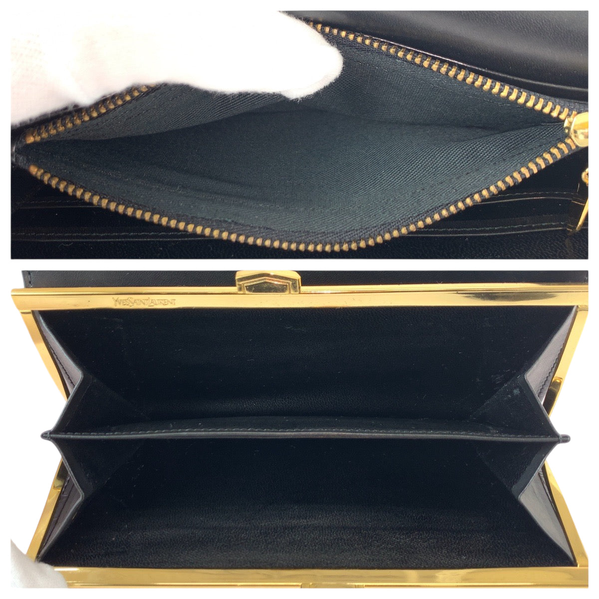 22050 YVES SAINT LAURENT イヴ サンローラン ヴィンテージ 型押し ブラック 黒 ゴールド金具 レザー 長財布 ロングウォレット レディース ABP28