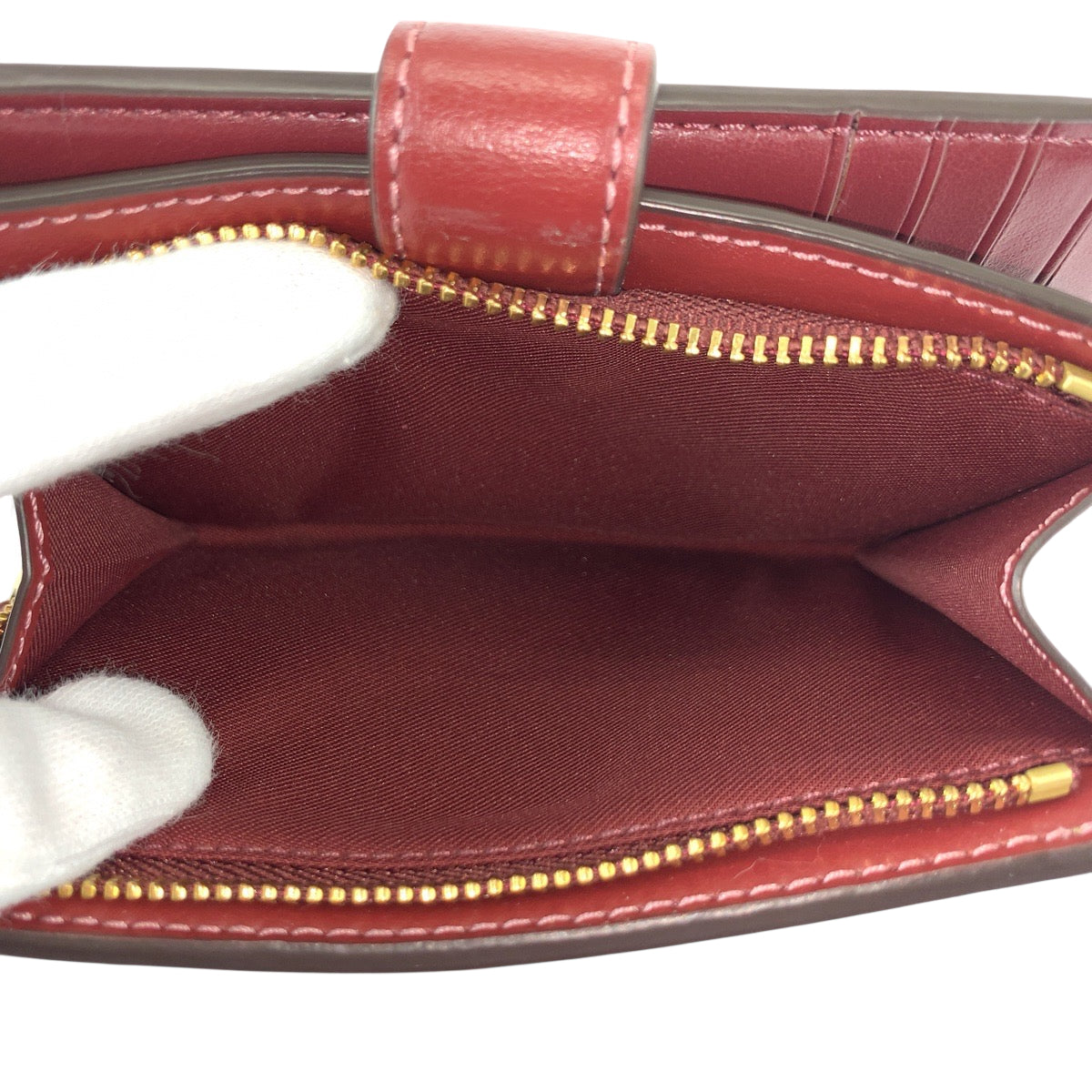 22057 COACH コーチ シグネチャー 花柄 ブラウン ボルドー ゴールド金具 レザー 折り財布 コンパクトウォレット レディース A5