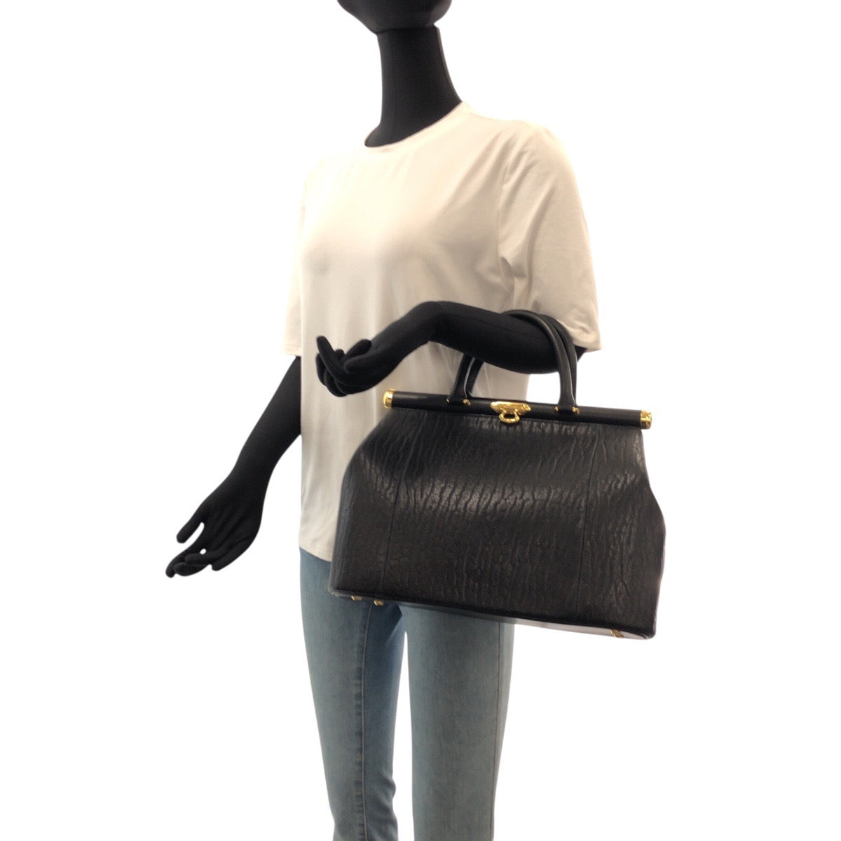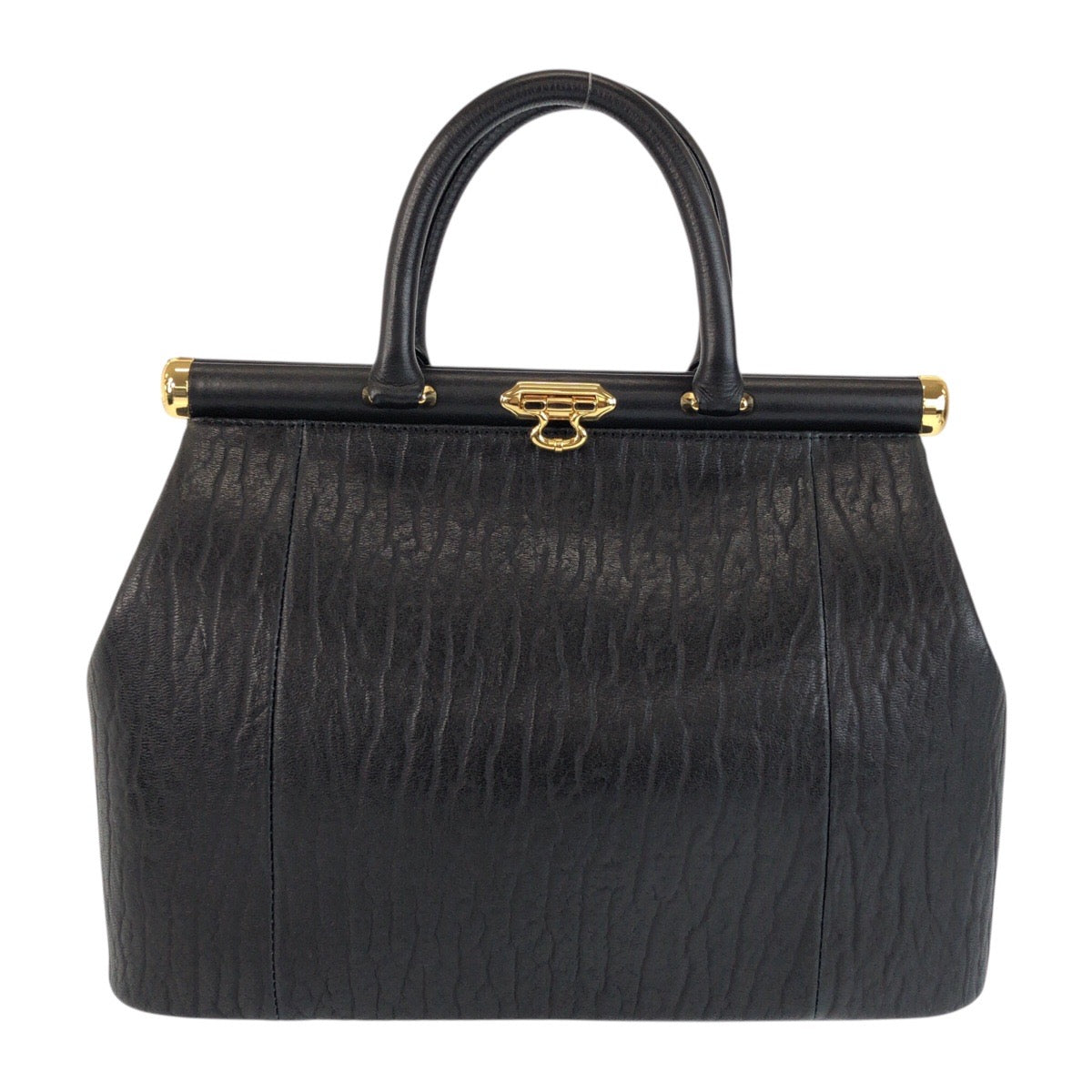 22065 ブラック 黒 ゴールド金具 レザー ハンドバッグ レディース A3