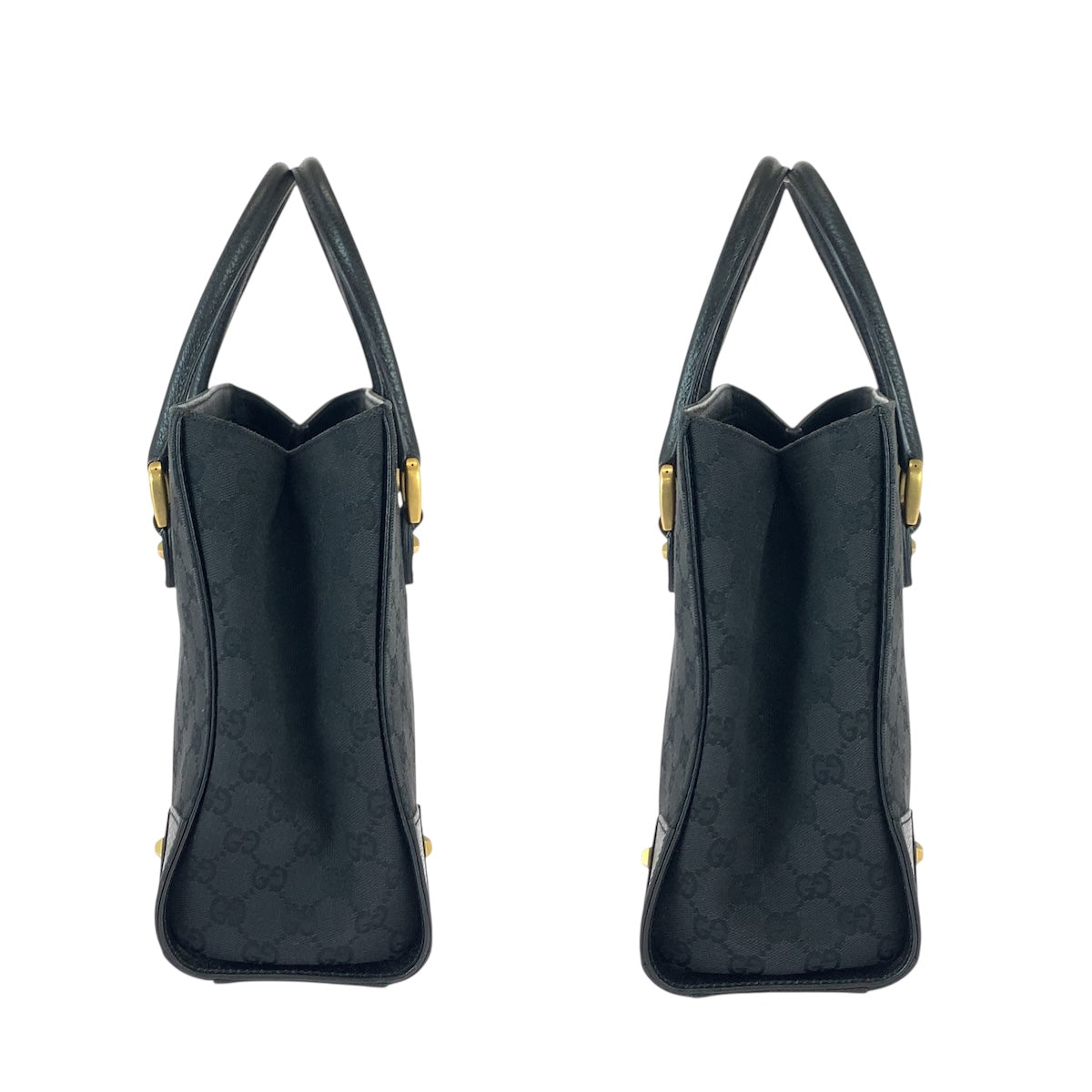 22080 GUCCI グッチ ブラック 黒 ゴールド金具 GGキャンバス / レザー 120895 トートバッグ ハンドバッグ レディース A56