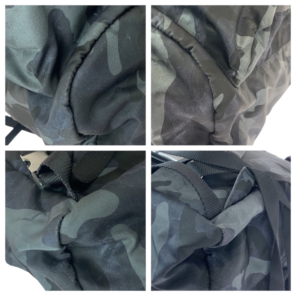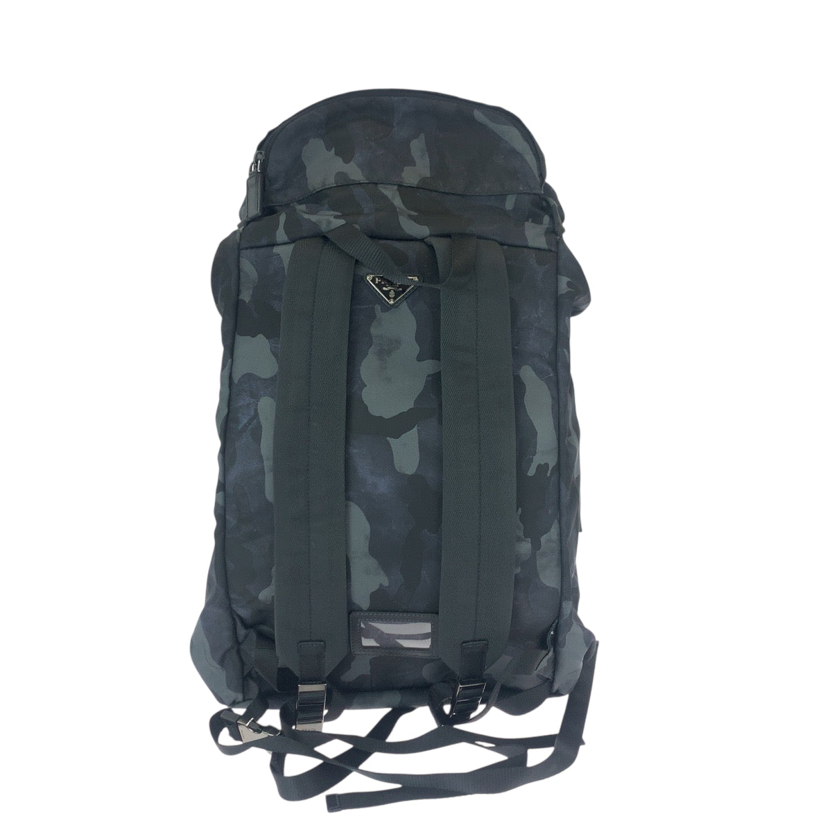 22084 PRADA プラダ テスート V136 カモフラ 迷彩 三角ロゴプレート ブラック グレー ガンメタ金具 ナイロン / レザー リュック・デイパック バックパック メンズ A100