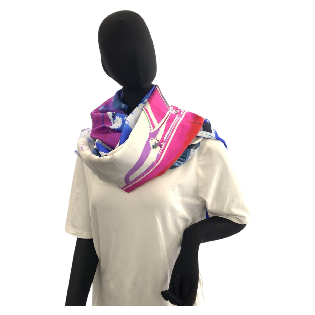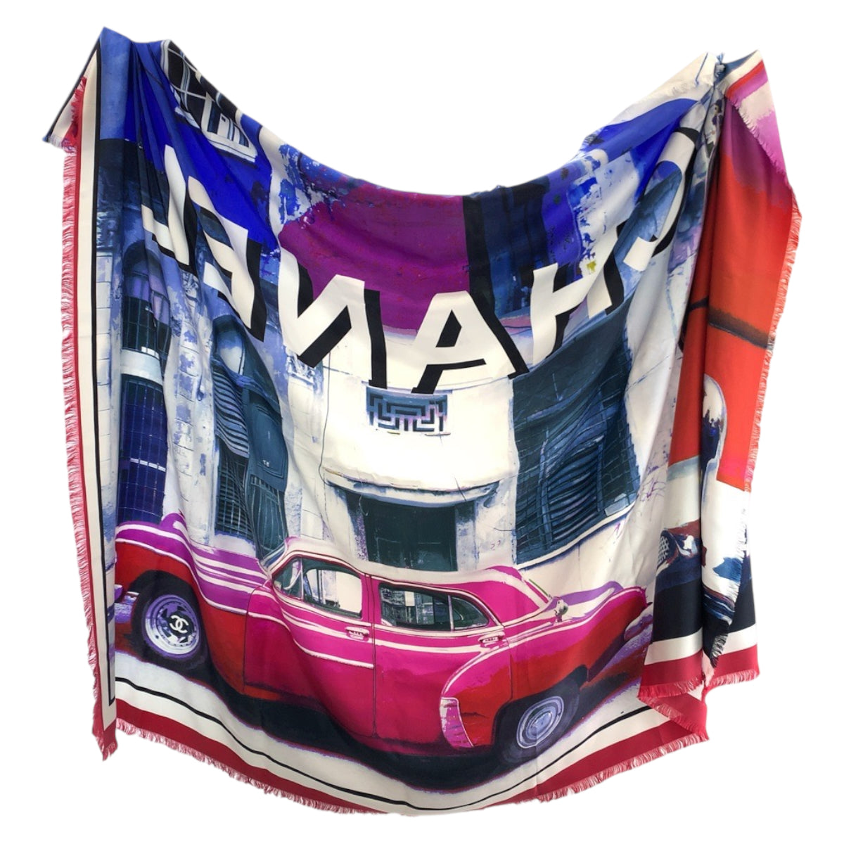 22088 CHANEL シャネル 大判 車 ブルー ホワイト レッド シルク スカーフ ストール 男女兼用 レディース A74