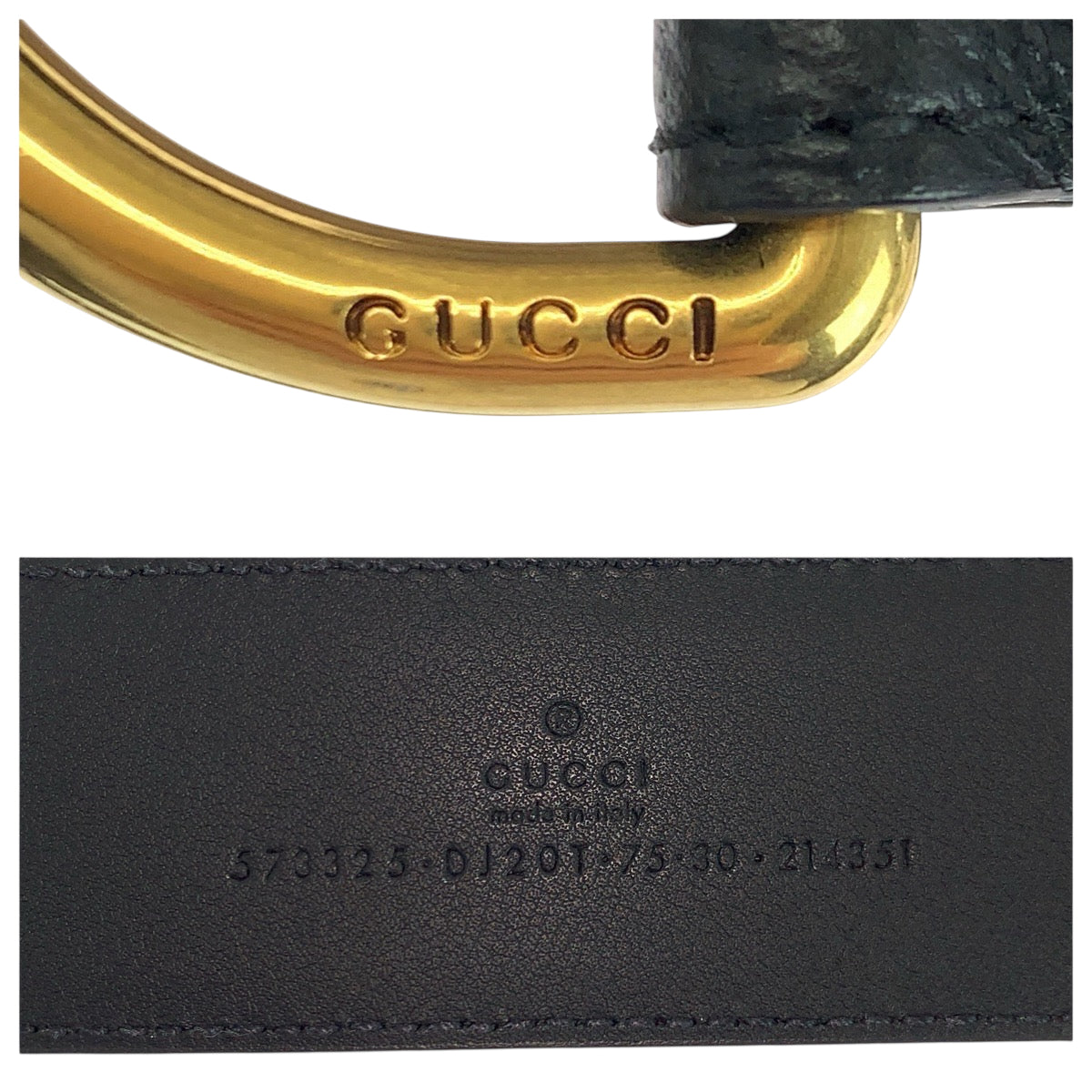 22140 GUCCI グッチ 75cm/30インチ ブラック 黒 ゴールド金具 レザー 573325 ベルト 男女兼用 レディース A15