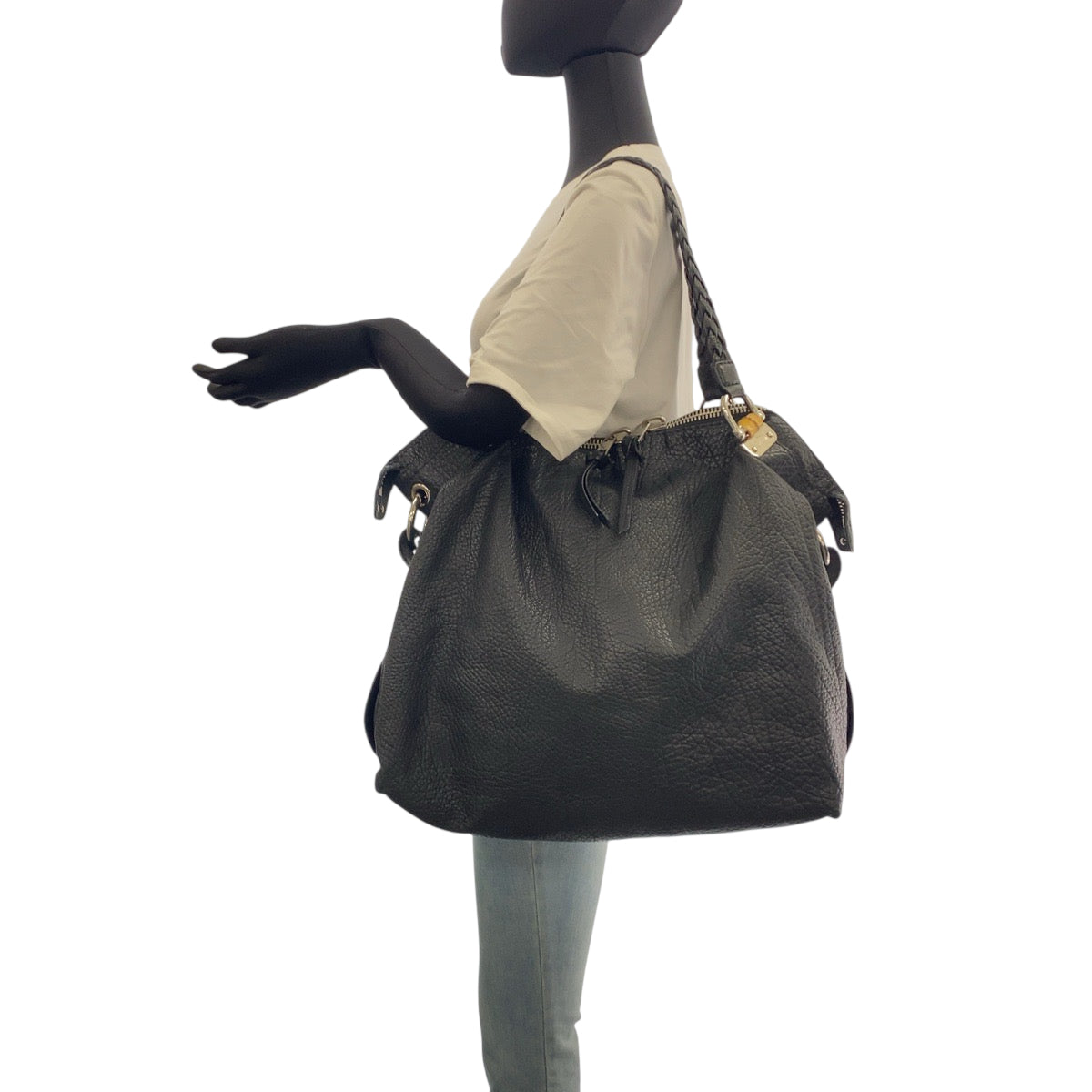 22142 GUCCI グッチ バンブー ブラック 黒 シルバー金具 レザー 232927 トートバッグ ショルダーバッグ レディース ABP63