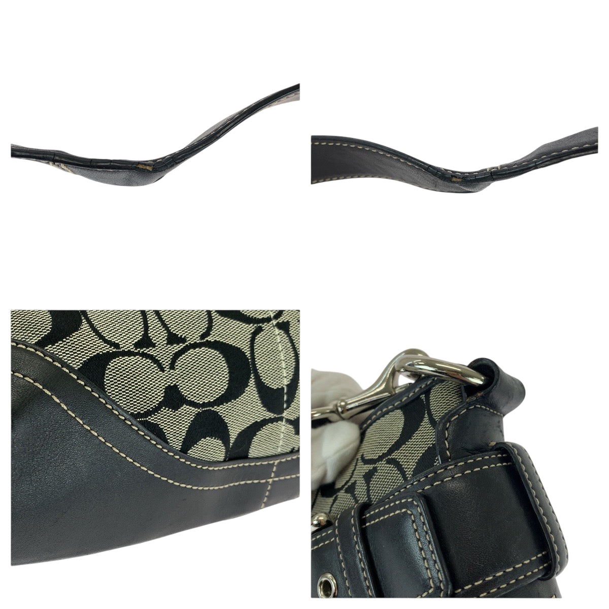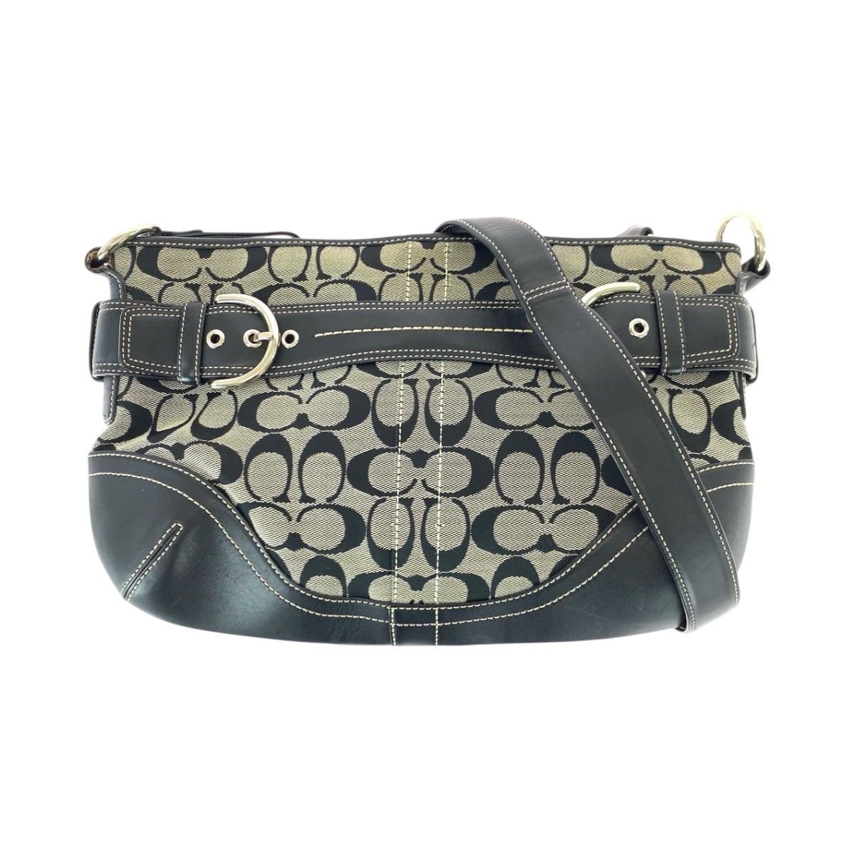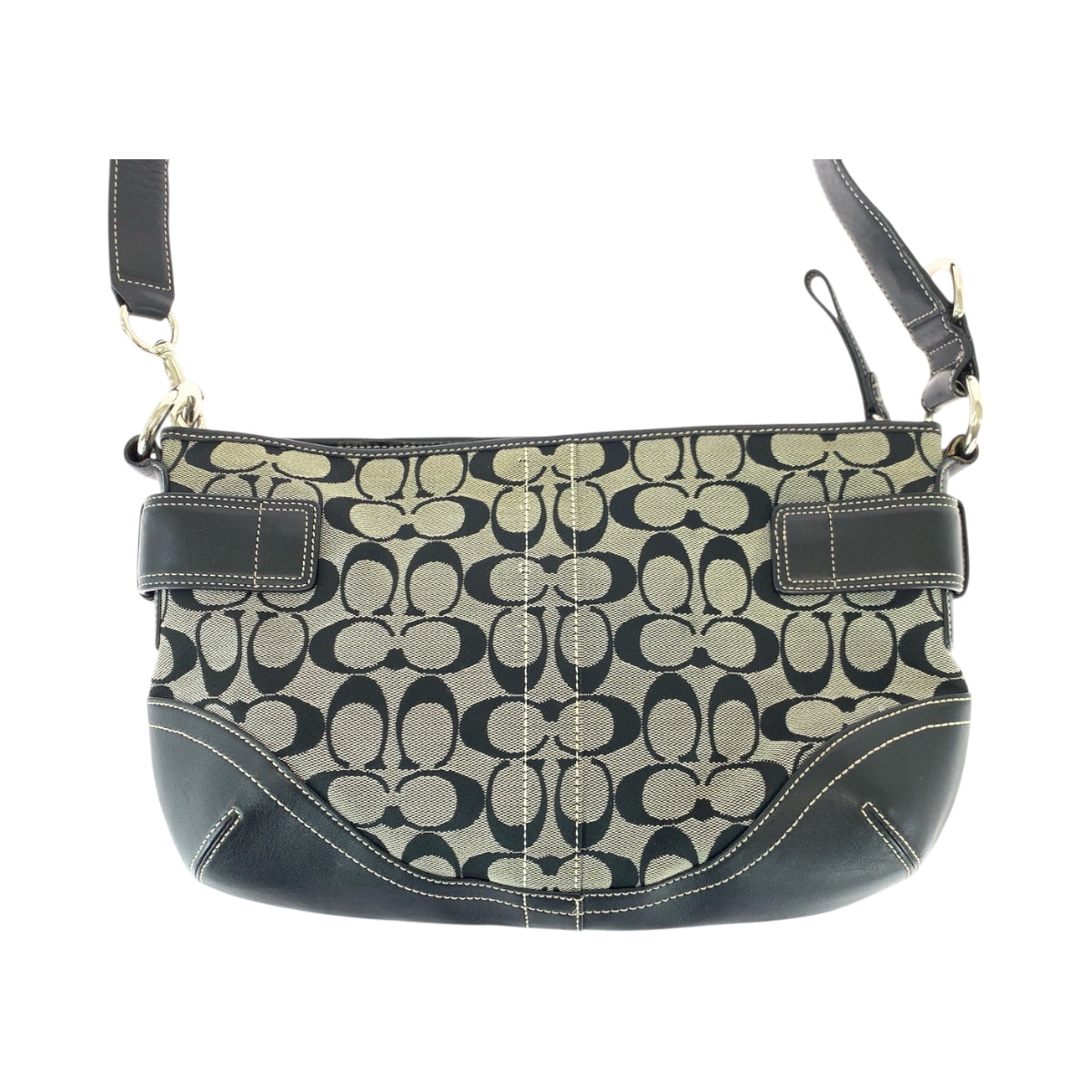 22205 COACH コーチ シグネチャー ブラック 黒 グレー キャンバス / レザー E06K-7077 ショルダーバッグ メッセンジャーバッグ レディース ABP8