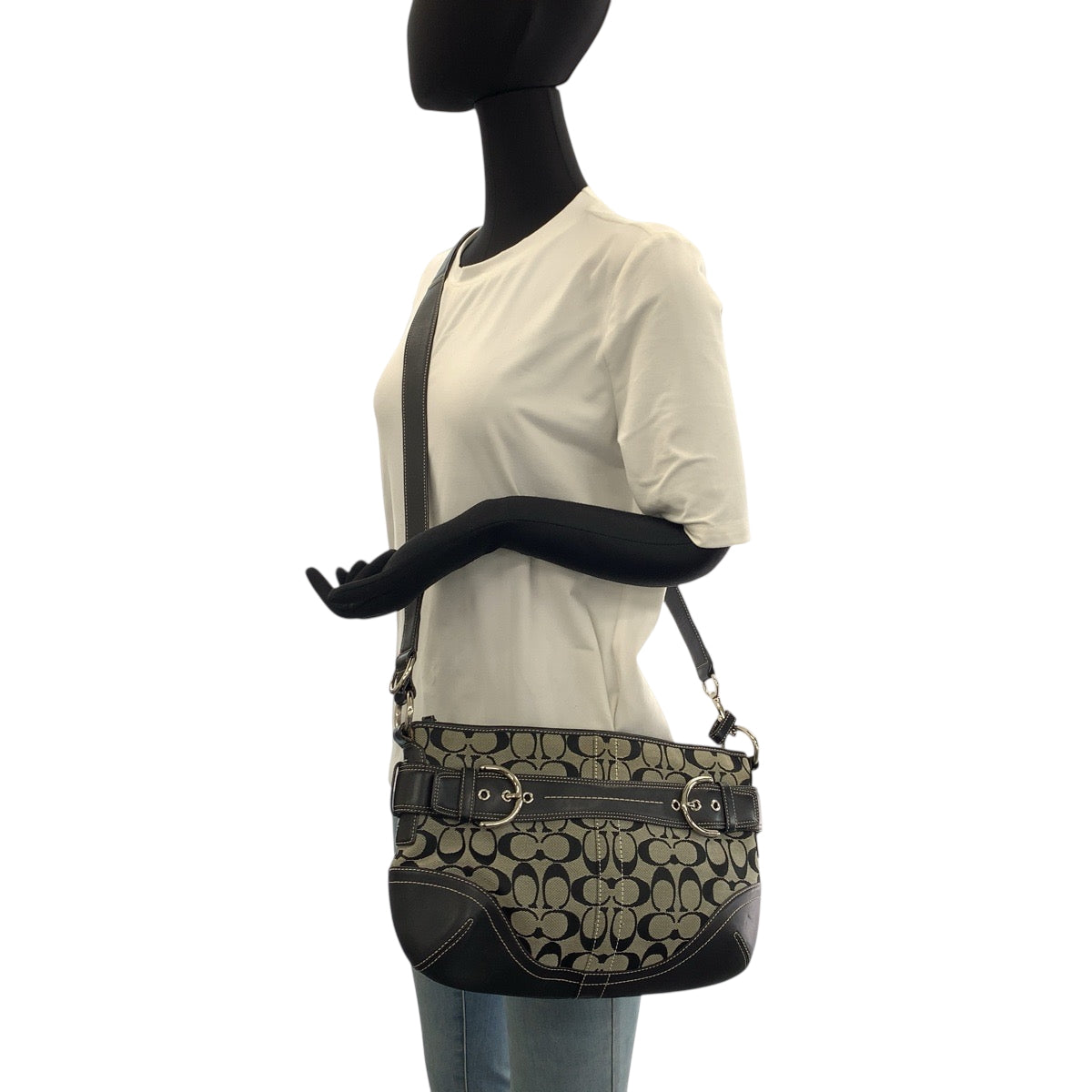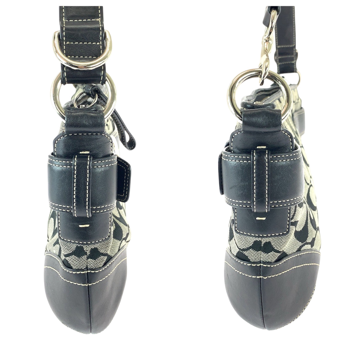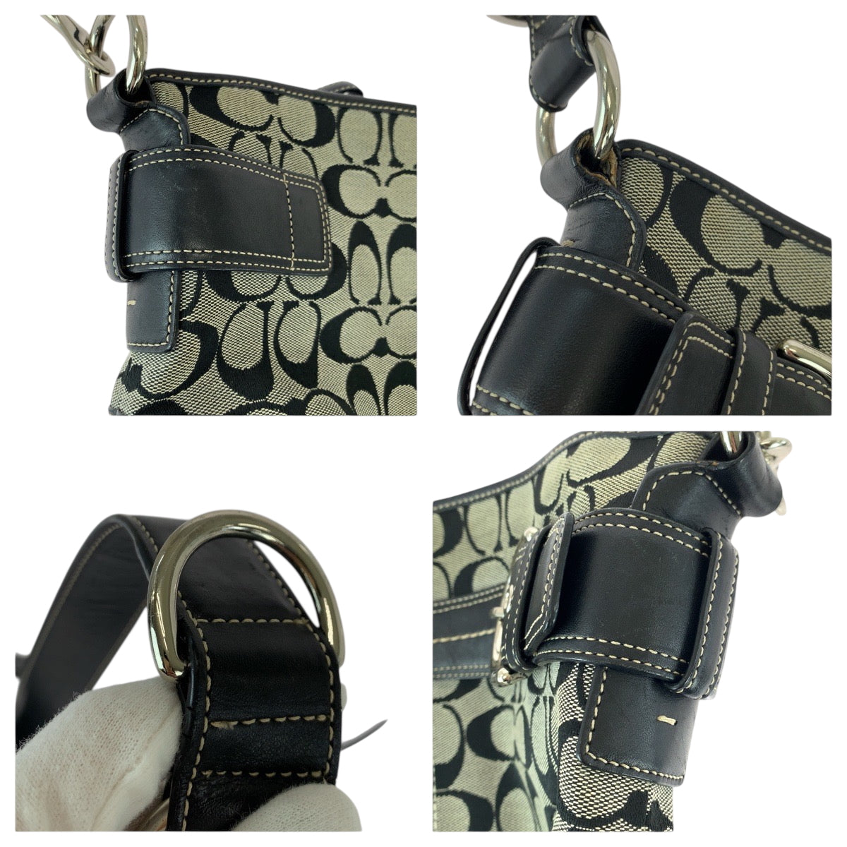 22205 COACH コーチ シグネチャー ブラック 黒 グレー キャンバス / レザー E06K-7077 ショルダーバッグ メッセンジャーバッグ レディース ABP8