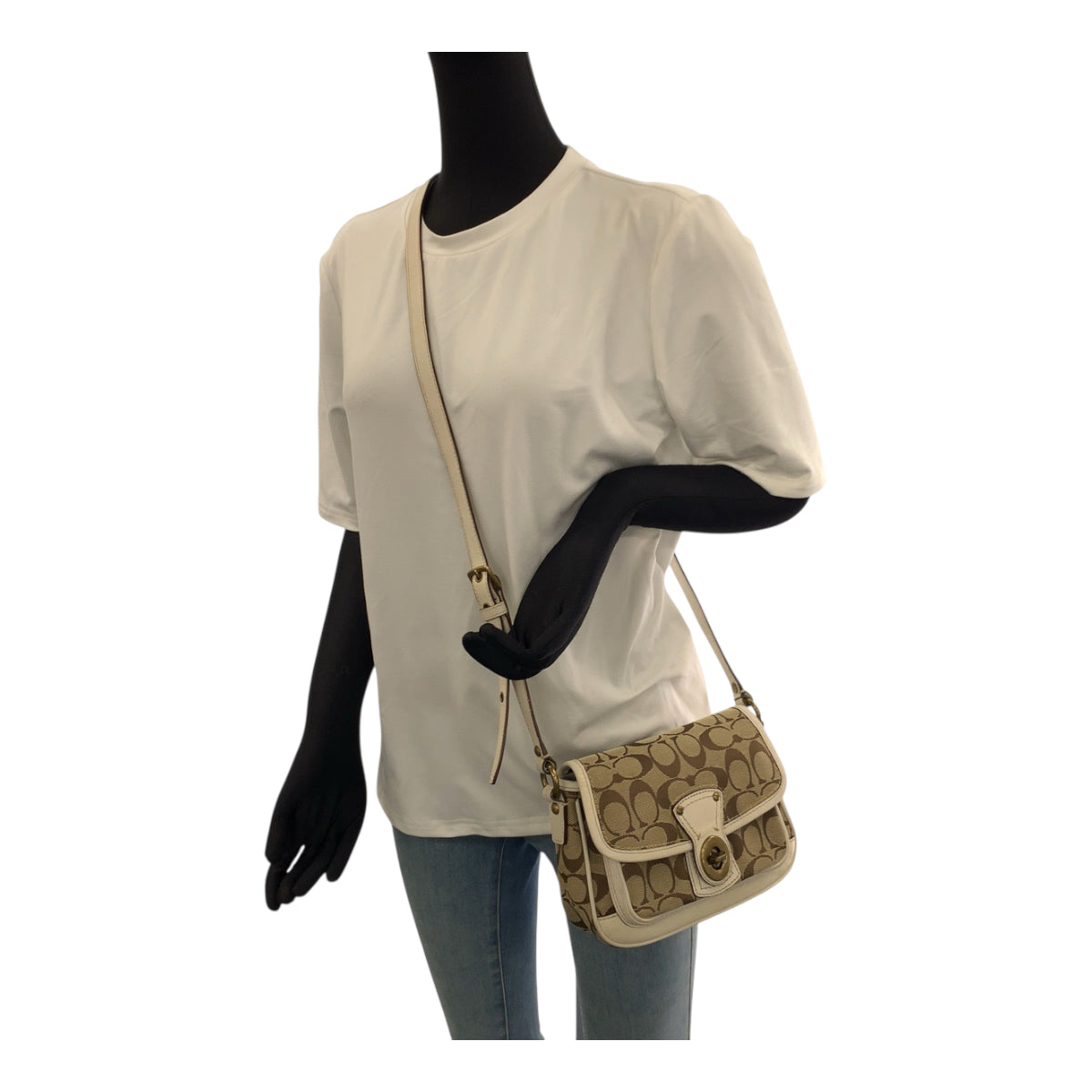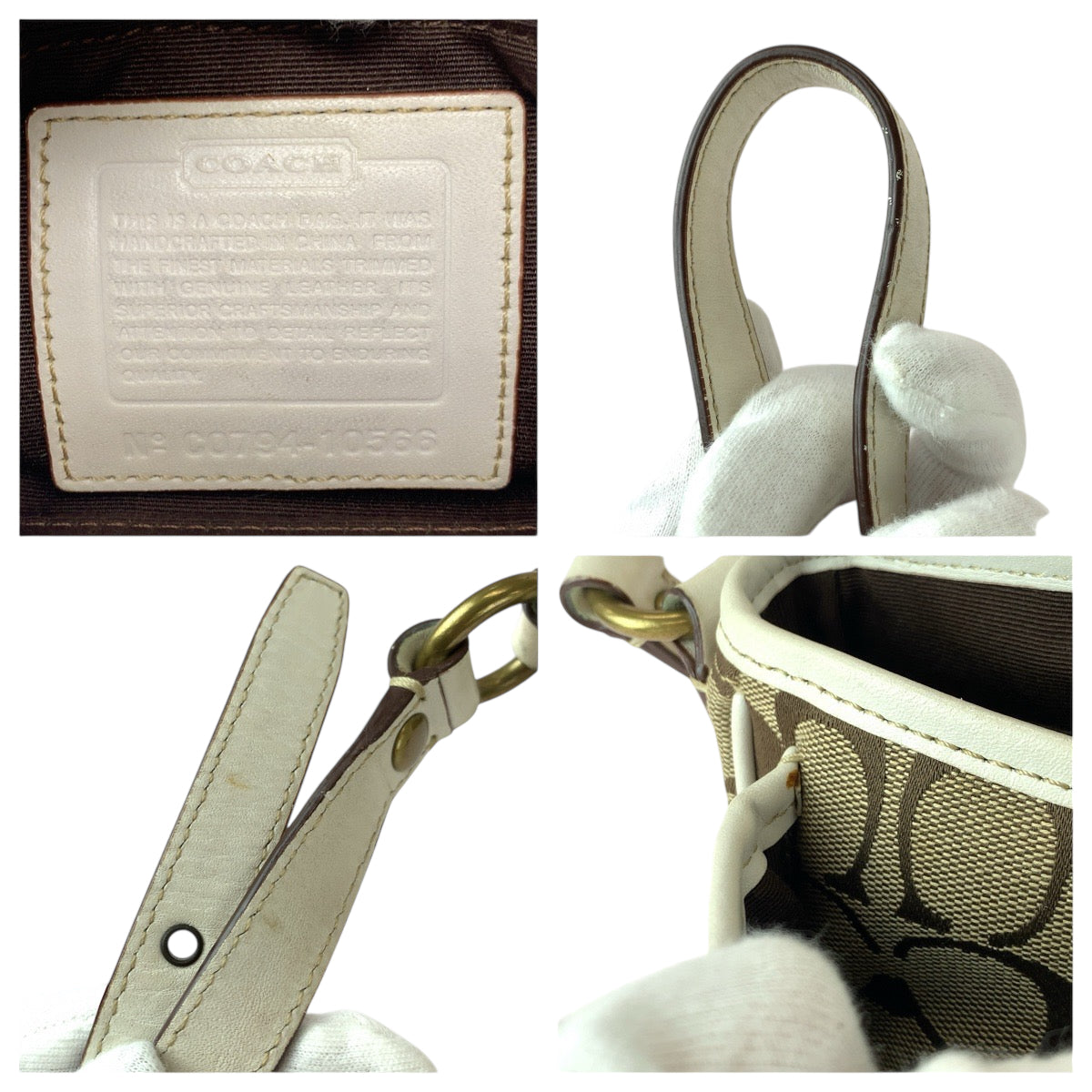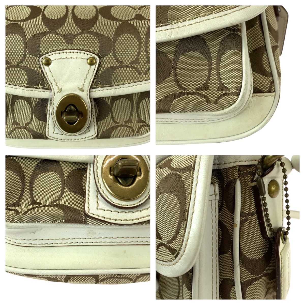 22222 COACH コーチ シグネチャー ベージュ ホワイト ゴールド金具 キャンバス / レザー 10566 ショルダーバッグ メッセンジャーバッグ レディース ABP7