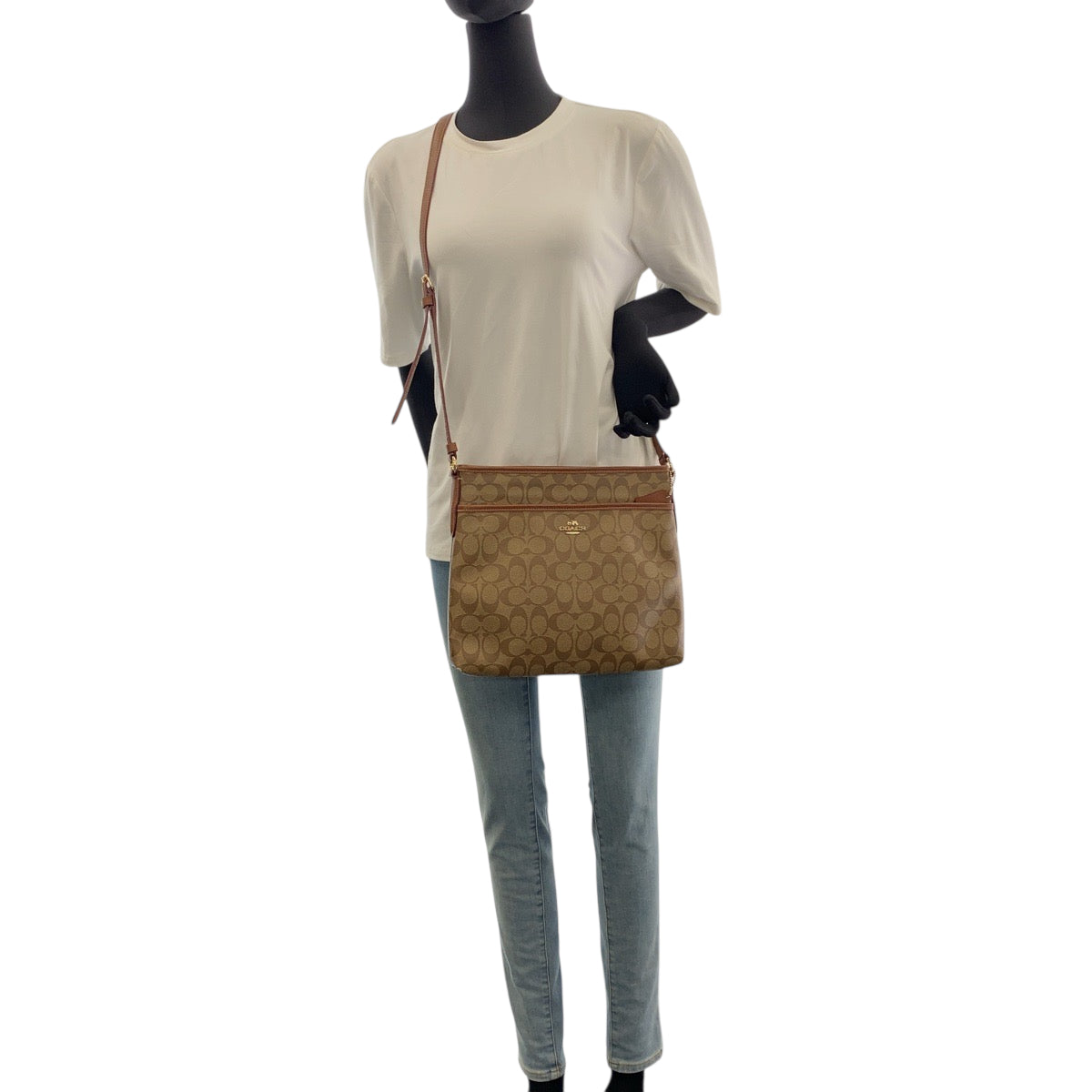 22223 COACH コーチ シグネチャー ベージュ ブラウン ゴールド金具 PVC / レザー 34938 ショルダーバッグ ポシェット レディース ABP7