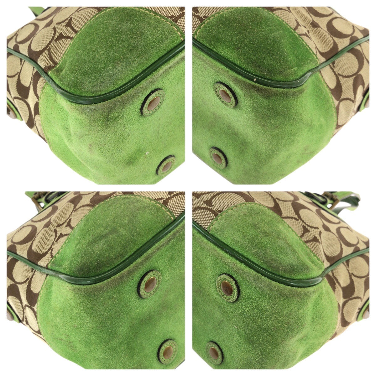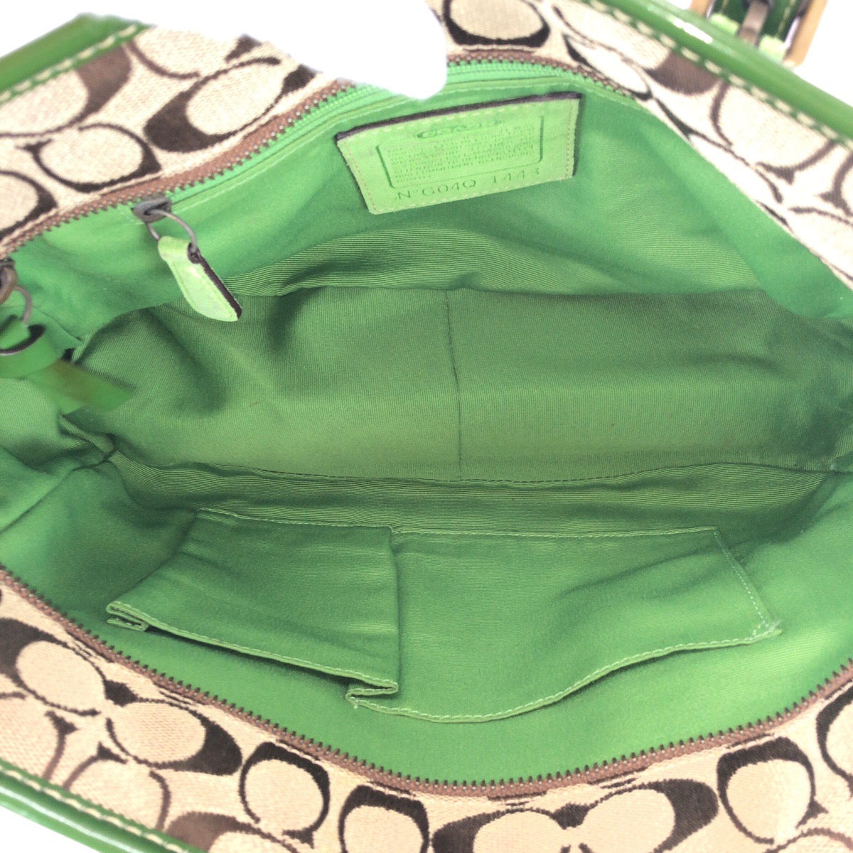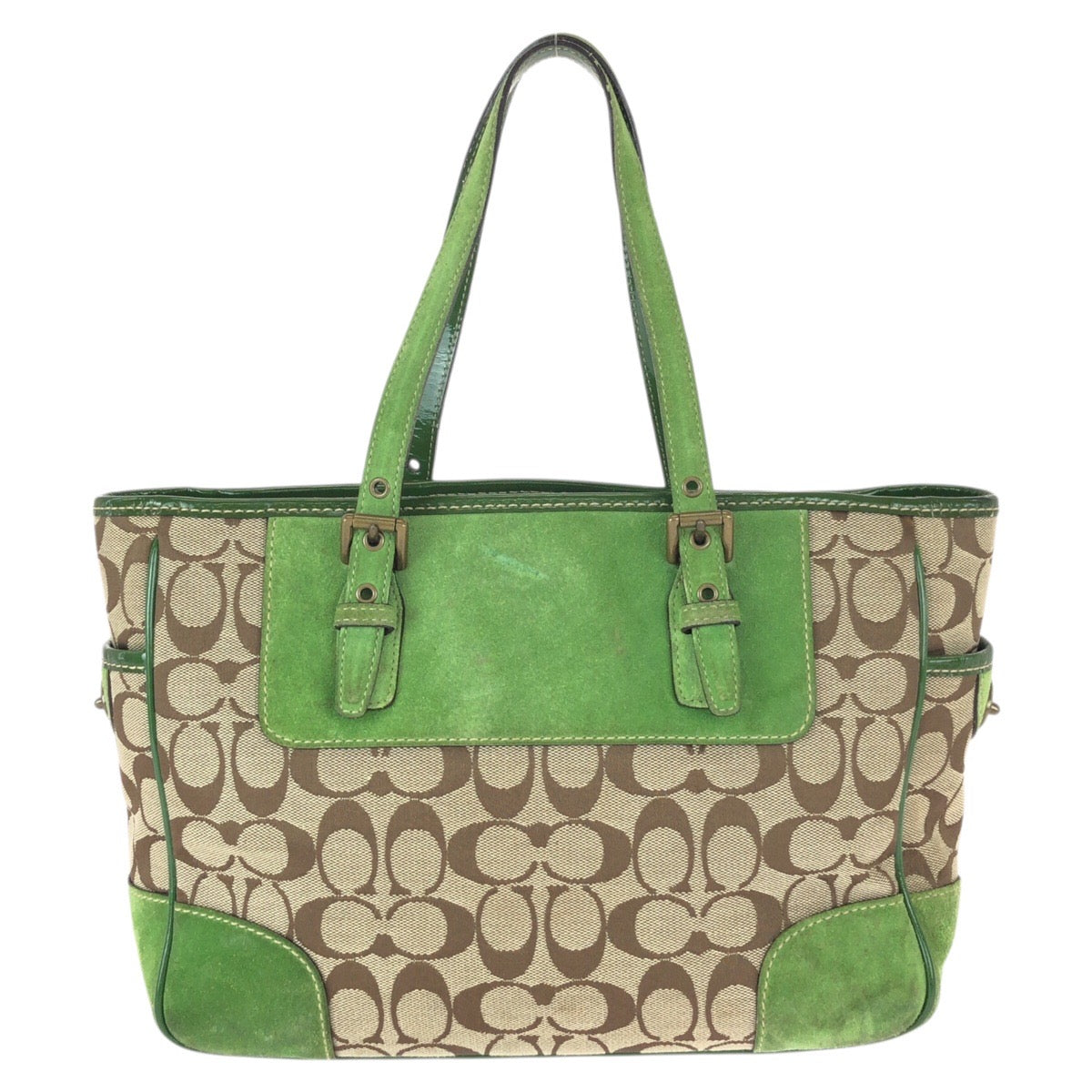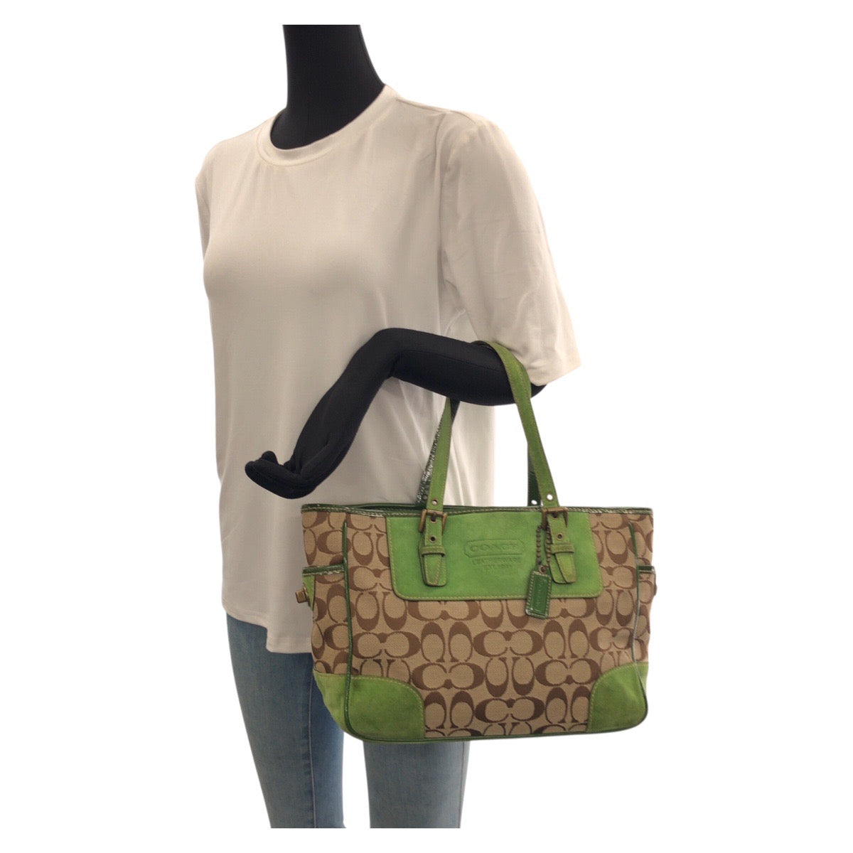 22225 COACH コーチ シグネチャー ベージュ グリーン ゴールド金具 キャンバス / スエード 1443 トートバッグ ハンドバッグ レディース AB6
