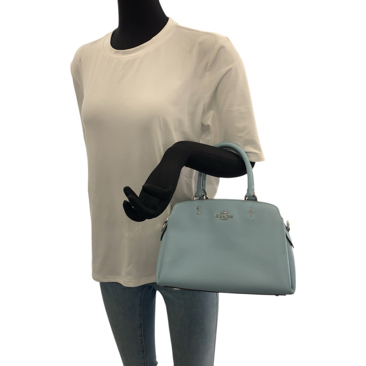 22237 COACH コーチ ミニ リリー キャリーオール ブルー ライトブルー シルバー金具 レザー 91146 ハンドバッグ レディース AB6