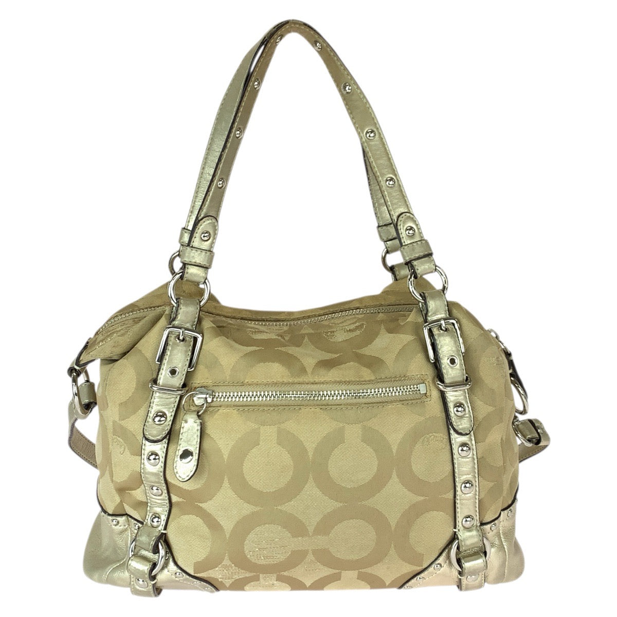 22254 COACH コーチ オプアート 2way ベージュ ゴールド シルバー金具 キャンバス / レザー 15567 トートバッグ ショルダーバッグ レディース B