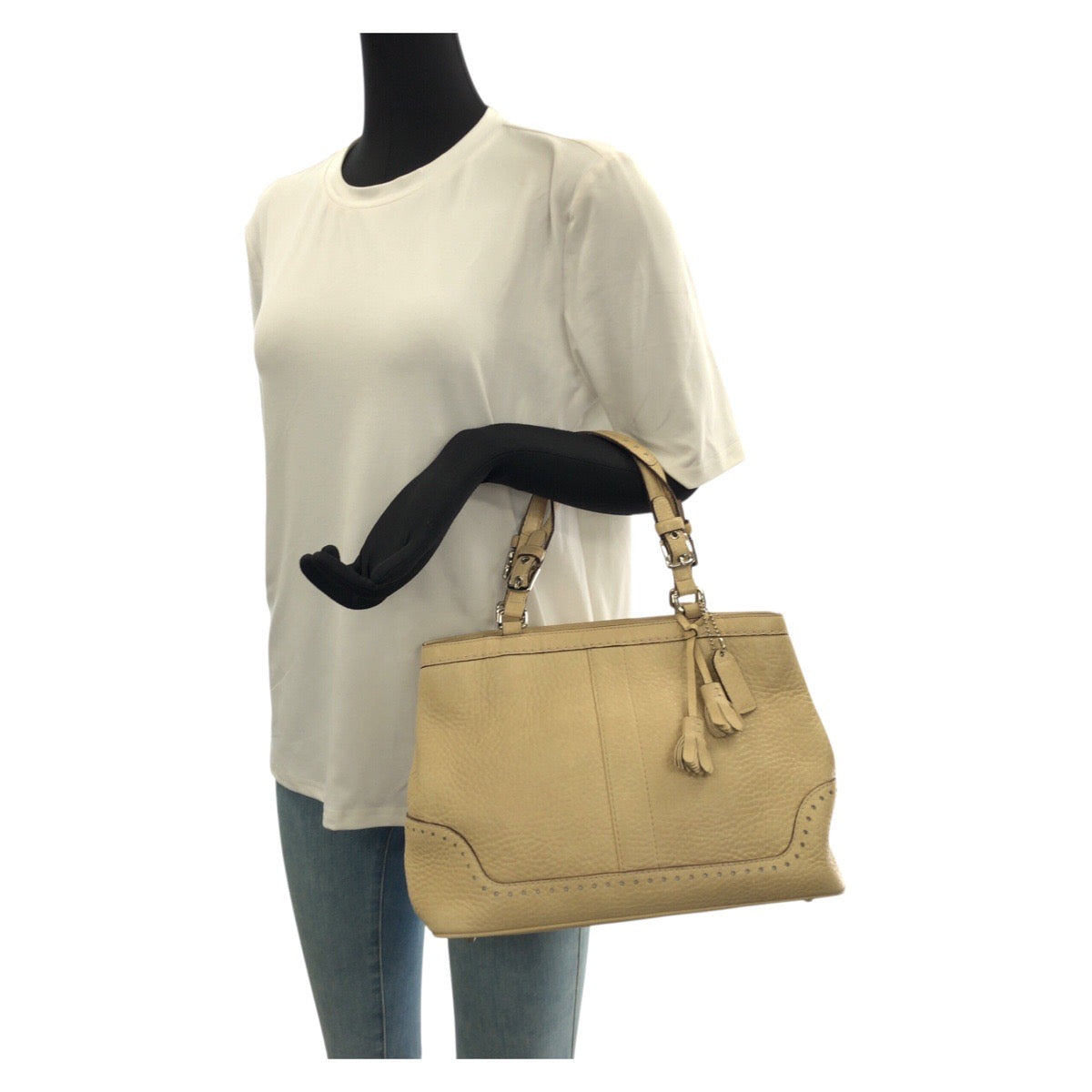 22257 COACH コーチ ハンプトンズ フリンジ ベージュ シルバー金具 レザー 5055 トートバッグ ハンドバッグ レディース ABP4