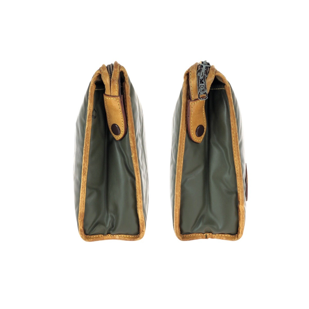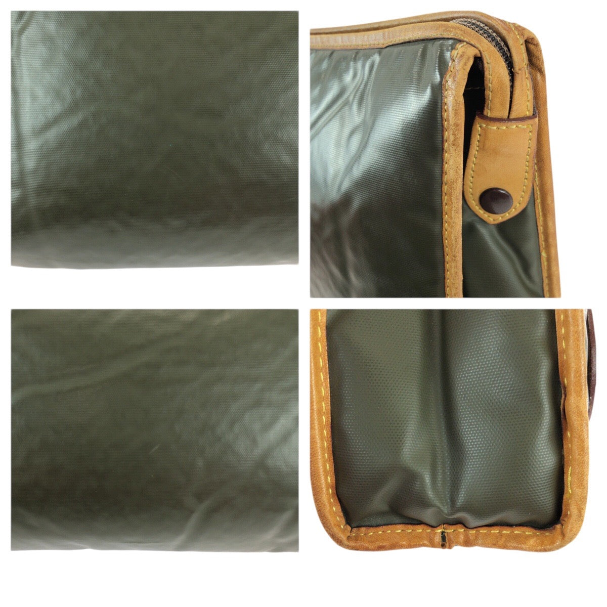22266 HUNTING WORLD ハンティングワールド バチュークロス カーキ ベージュ ナイロン / レザー セカンドバッグ クラッチバッグ メンズ B4
