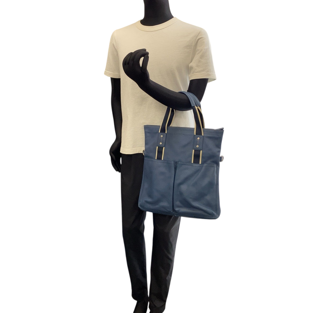 22318 COACH コーチ ブルー 青 シルバー金具 レザー 70558 トートバッグ ビジネスバッグ メンズ AB8
