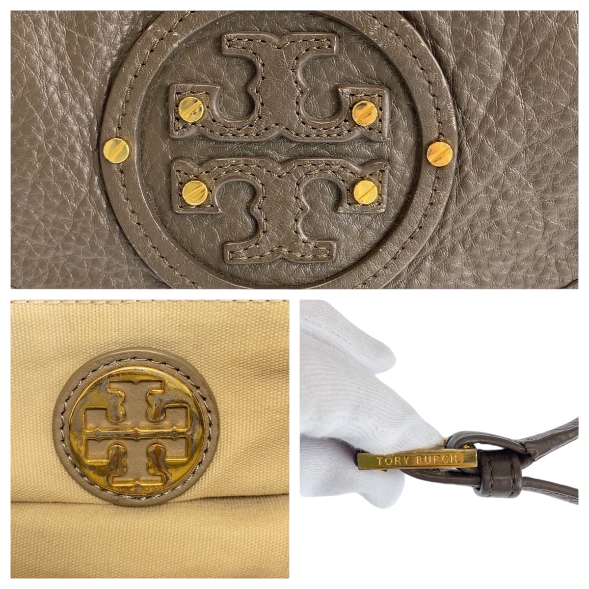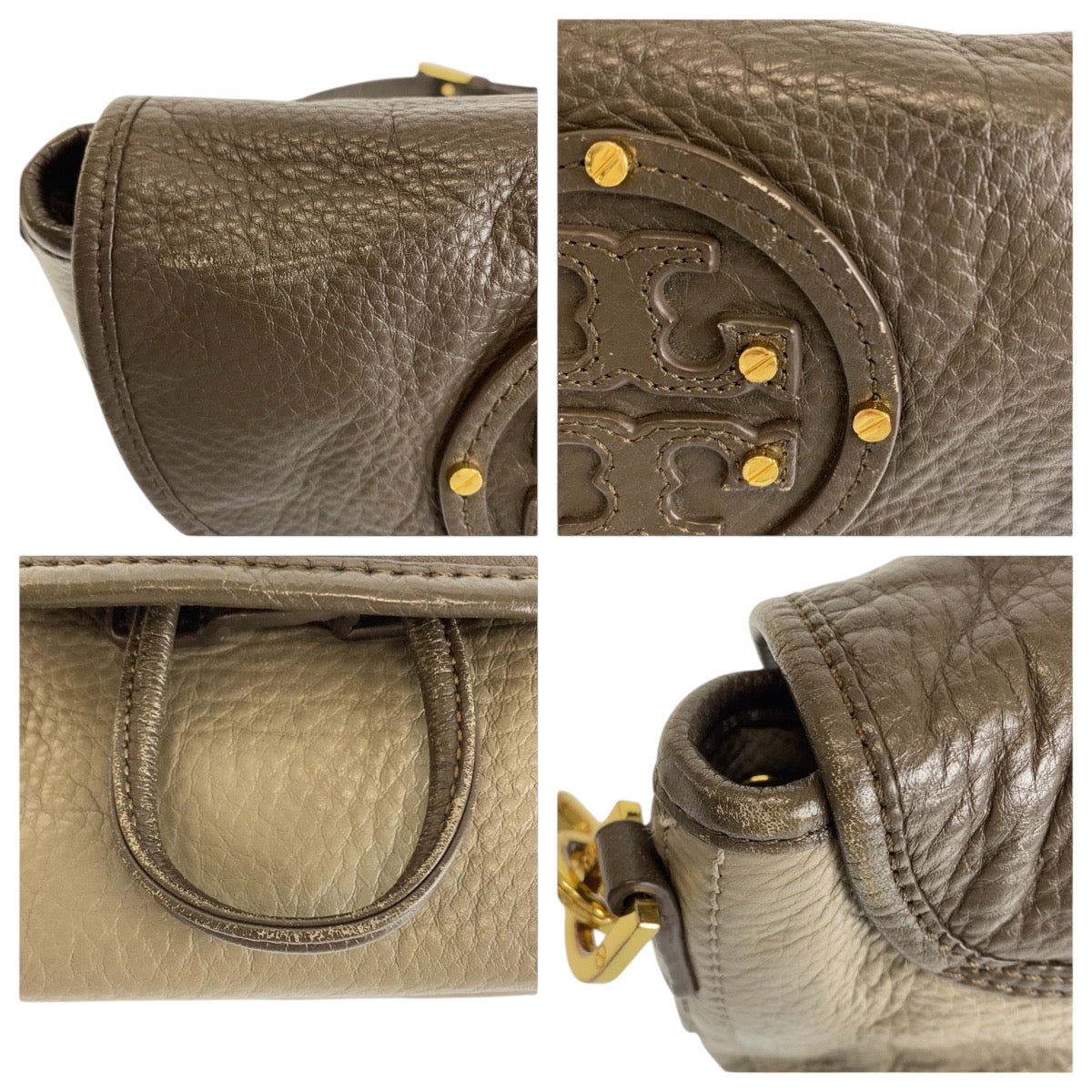 22353 Tory Burch トリーバーチ ブラウン グレー ゴールド金具 レザー ショルダーバッグ ポシェット レディース AB7