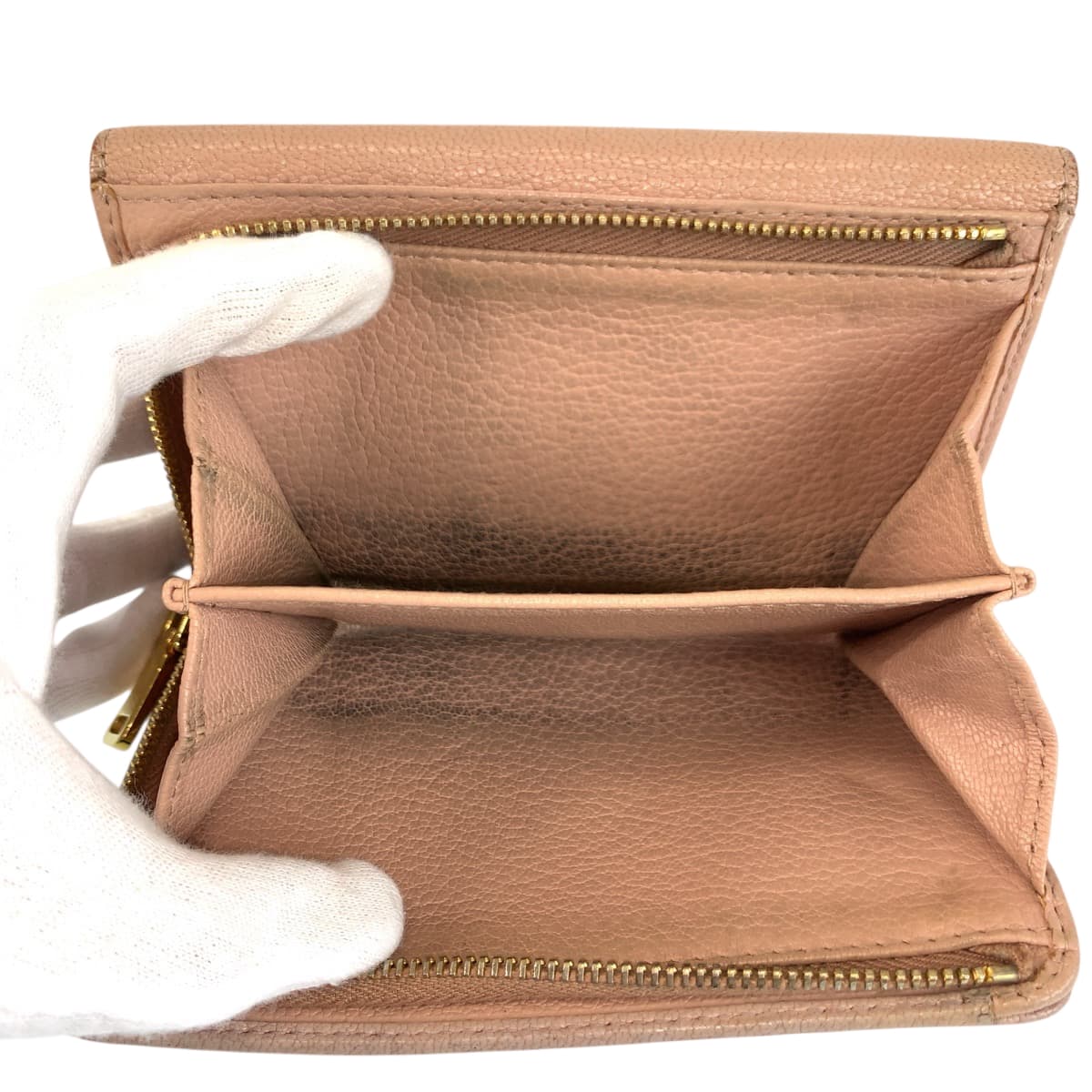 22364 MIUMIU ミュウミュウ マドラス ピンク ゴールド金具 レザー 折り財布 コンパクトウォレット レディース AB3
