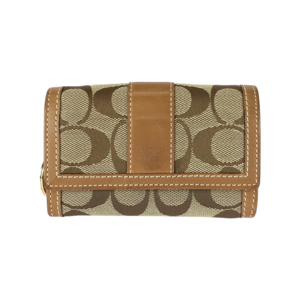 22391 COACH コーチ シグネチャー ブラウン ベージュ ゴールド金具 キャンバス / レザー コインケース 小銭入れ コンパクトウォレット レディース AB3