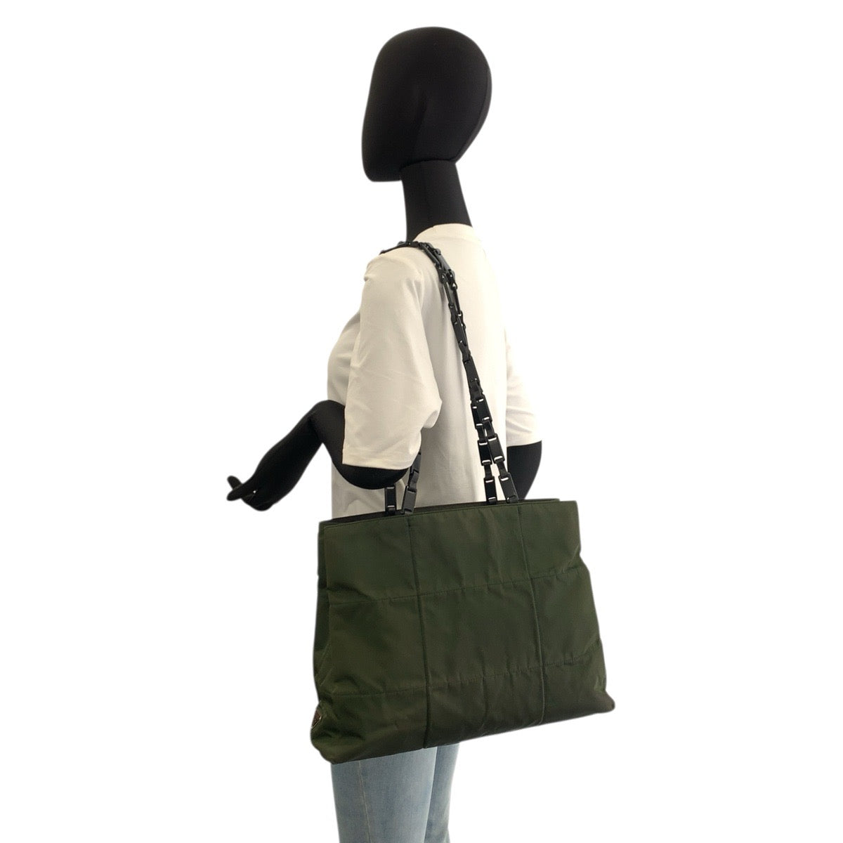 22425 PRADA プラダ グリーン ブラック ナイロン / プラスチック トートバッグ チェーンショルダーバッグ レディース AB8