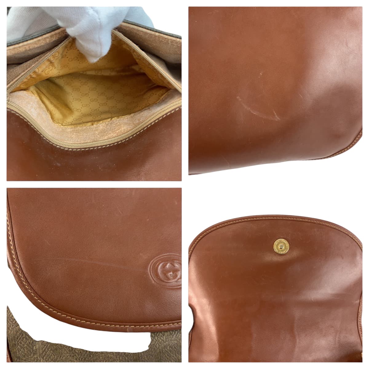 22429 GUCCI グッチ ヴィンテージ オールドグッチ ブラウン ゴールド金具 レザー / キャンバス 001 084 1304 ショルダーバッグ ポシェット レディース AB20