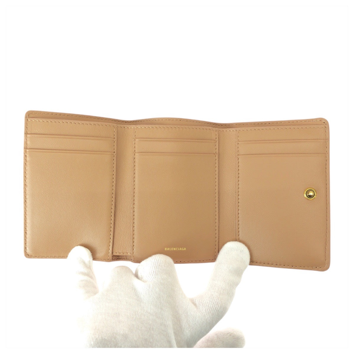 22439 BALENCIAGA バレンシアガ ベージュ ゴールド金具 レザー 73630 9607 O 555583 折り財布 コンパクトウォレット レディース A24