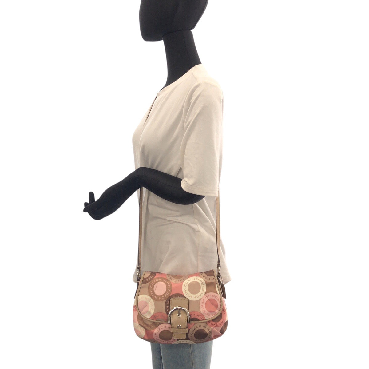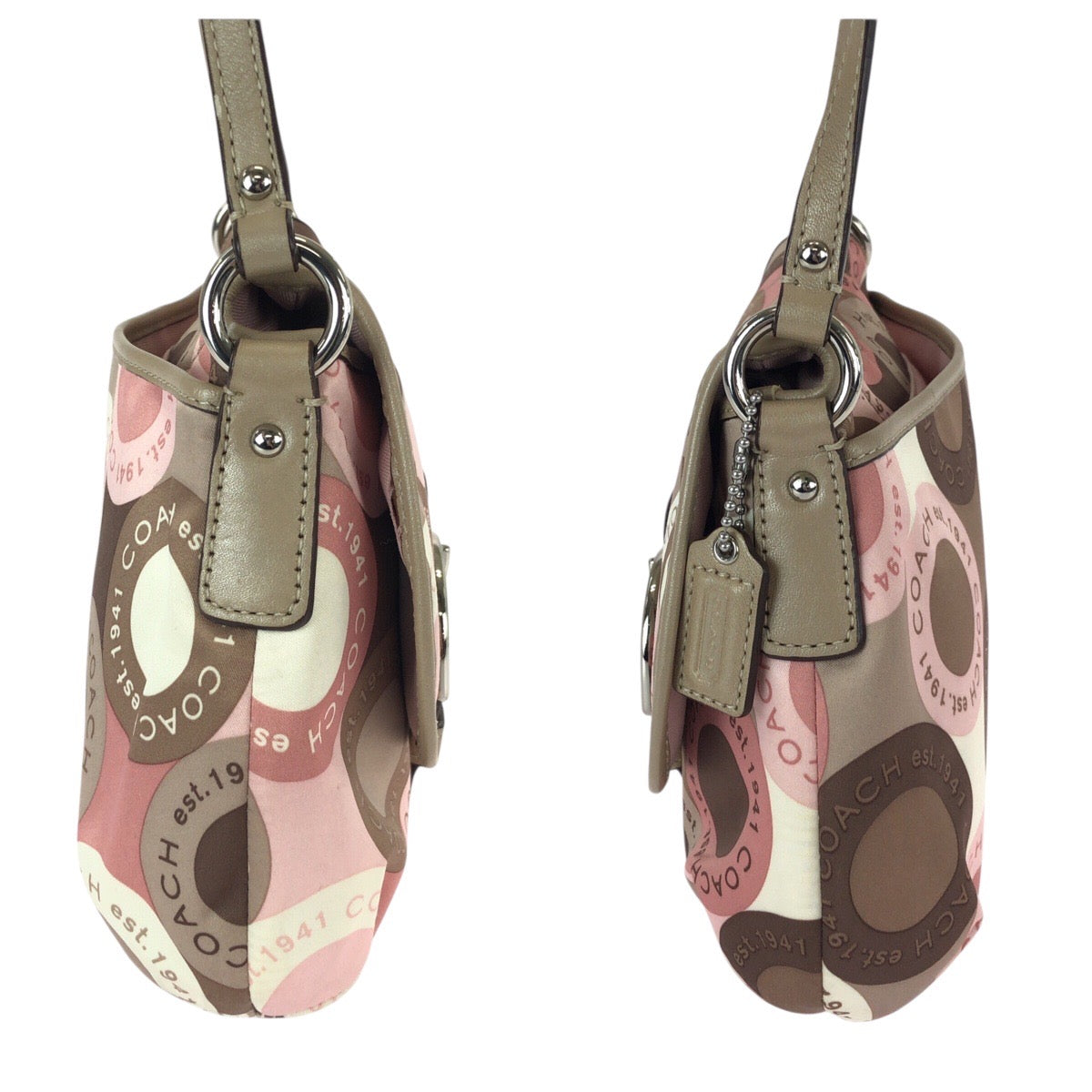 22461 COACH コーチ ソーホー ベージュ ブラウン ピンク ナイロン / レザー ショルダーバッグ ポシェット レディース A7