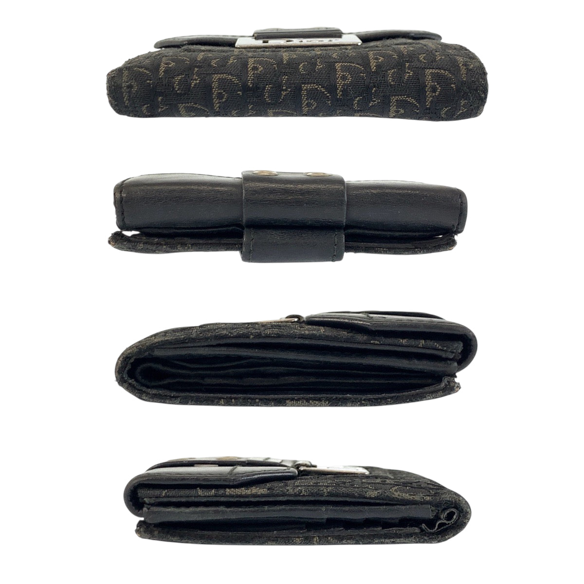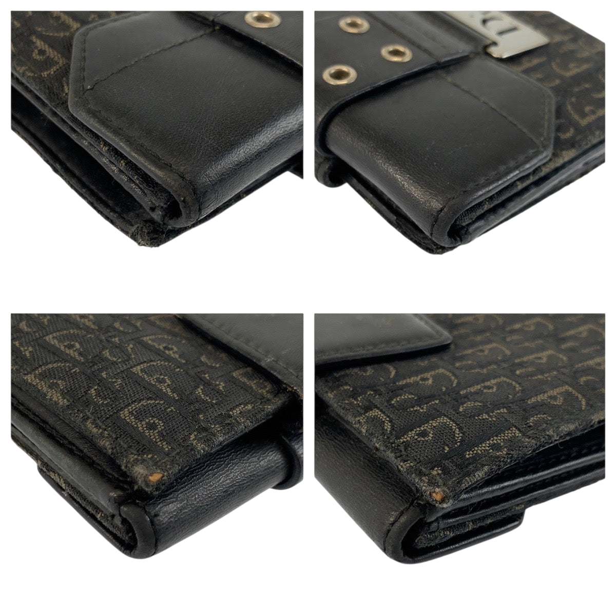 22482 Christian Dior クリスチャンディオール トロッター ブラック 黒 シルバー金具 キャンバス / レザー TR0072 折財布 コンパクトウォレット レディース AB7