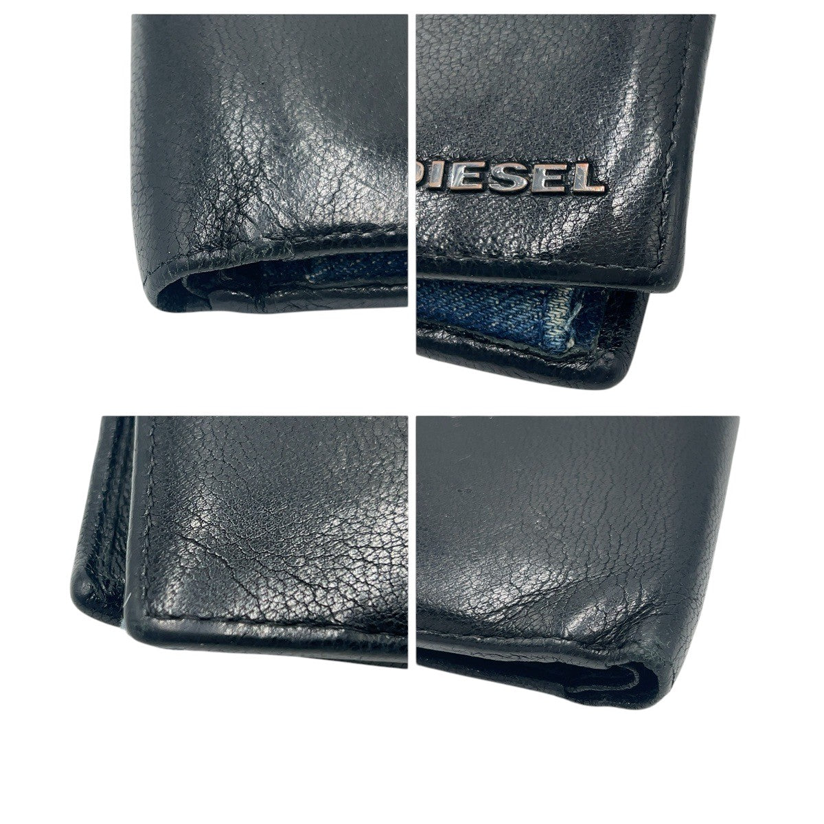 22497 DIESEL ディーゼル ブラック 黒 レザー 二つ折り財布 折財布 コンパクトウォレット メンズ AB1