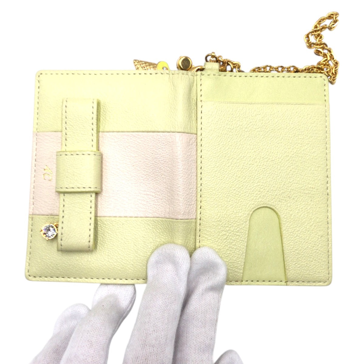 22513 4℃ 4℃ グリーン ベージュ レザー カードケース パスケース レディース ABP1